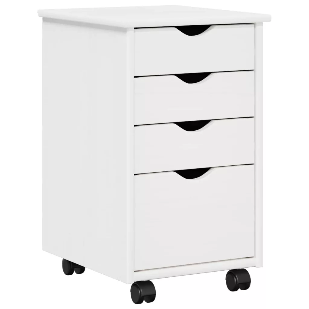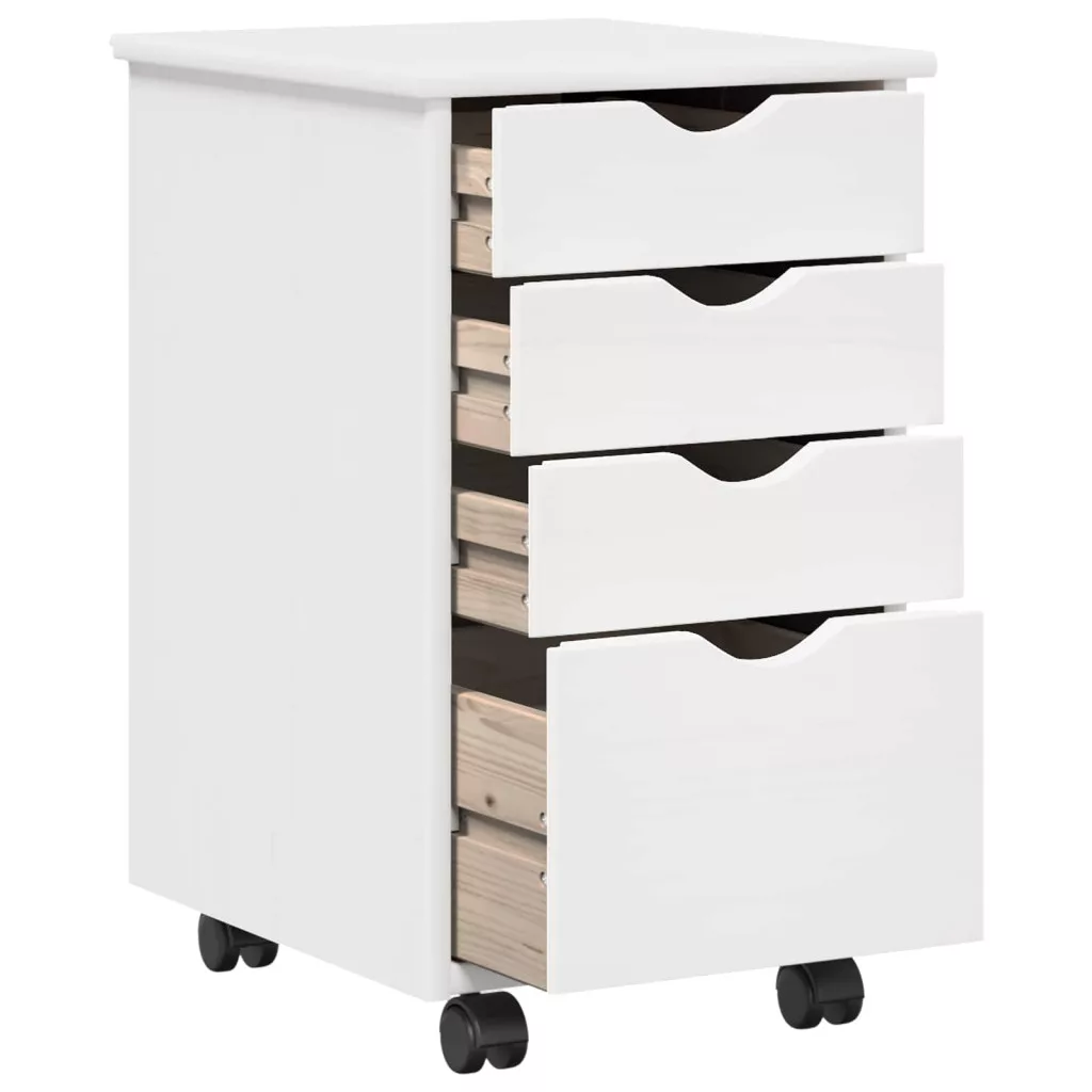 Görgős szekrény kerékkel Fehér 34 x 39 x 56 cm Tömör fenyőfa