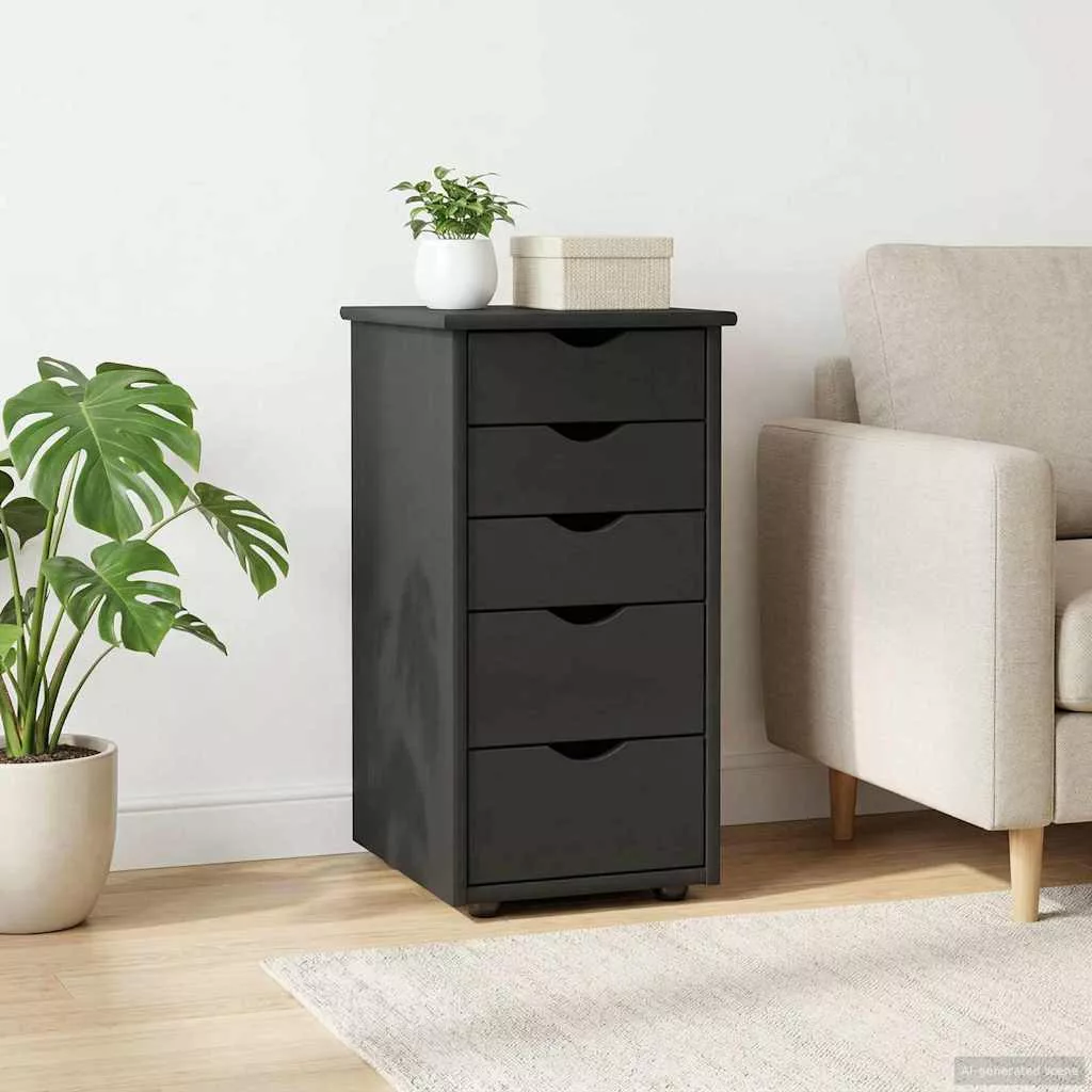 Ez a minimalista szekrény a kortárs dizájn jegyében készült, amely az egyszerűségre és a funkcionalitásra fókuszál – tökéletesen passzol különböző beltéri környezetekbe. Tömör fenyőből készült, elegáns, matt felülete van, ami nem fénylik. Ideális nappalikba, hálószobákba és home office-okba; egyszerűen beleillik bármilyen stílusba, miközben rengeteg tárolóhelyet biztosít a hatékony fiókrendszere révén. Praktikus dizájnja és rugalmassága miatt sokoldalú elem lehet a térben. Tömör fenyő konstrukció: Ez a szekrény prémium tömör fenyőfából készült, ami természetes szépséget és tartósságot biztosít. A fa meleg, földes érintést ad a belső térnek, elegáns választás, ami feldobja az életteret. Könnyű mobilitás: Funkcionális kerekekkel felszerelt, ez az egység egyszerűen mozgatható, rugalmasságot biztosítva a beállítások gyors módosításához. Zökkenőmentesen gördül, így könnyen átvihető egy másik szobába vagy átrendezhető a térben. Térkihasználó dizájn: Gondosan megtervezett téglalap alakja és süllyesztett fogantyúi révén ez a szekrény maximális tárolást kínál kompakt helyigény mellett. Garantáltan simán fognak csúszni a fiókok a kihúzható roller csúszkáknak köszönhetően, segítve a rendezettség fenntartását. Matt felület: A matt felület elegánsan mutat a szekrényen, biztosítva, hogy a nem fényes megjelenés friss és modern hatást adjon. Diszkrét eleganciát csempész, így tovább növeli a minimalista hangulatot bármilyen belső térhez. Egyszerű karbantartás: Tartsd tisztán a szekrényt rendszeres gondozással. Elég, ha egy nedves ruhával átsimítod, és kerüld a durva vegyszereket, hogy megőrizd a felületét évekig. Alacsony karbantartási igénye megkönnyíti, hogy a szekrény eleganciáját mindig megőrizhesd.