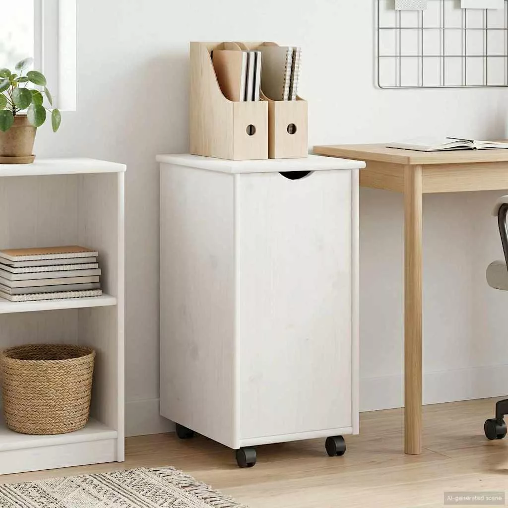Görgős szekrény kerékkel Fehér 34 x 39 x 65,5 cm Tömör fenyőfa