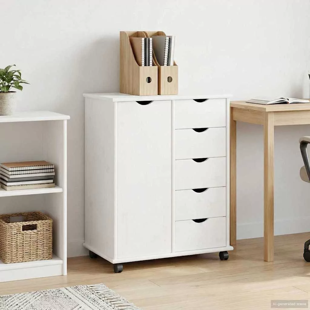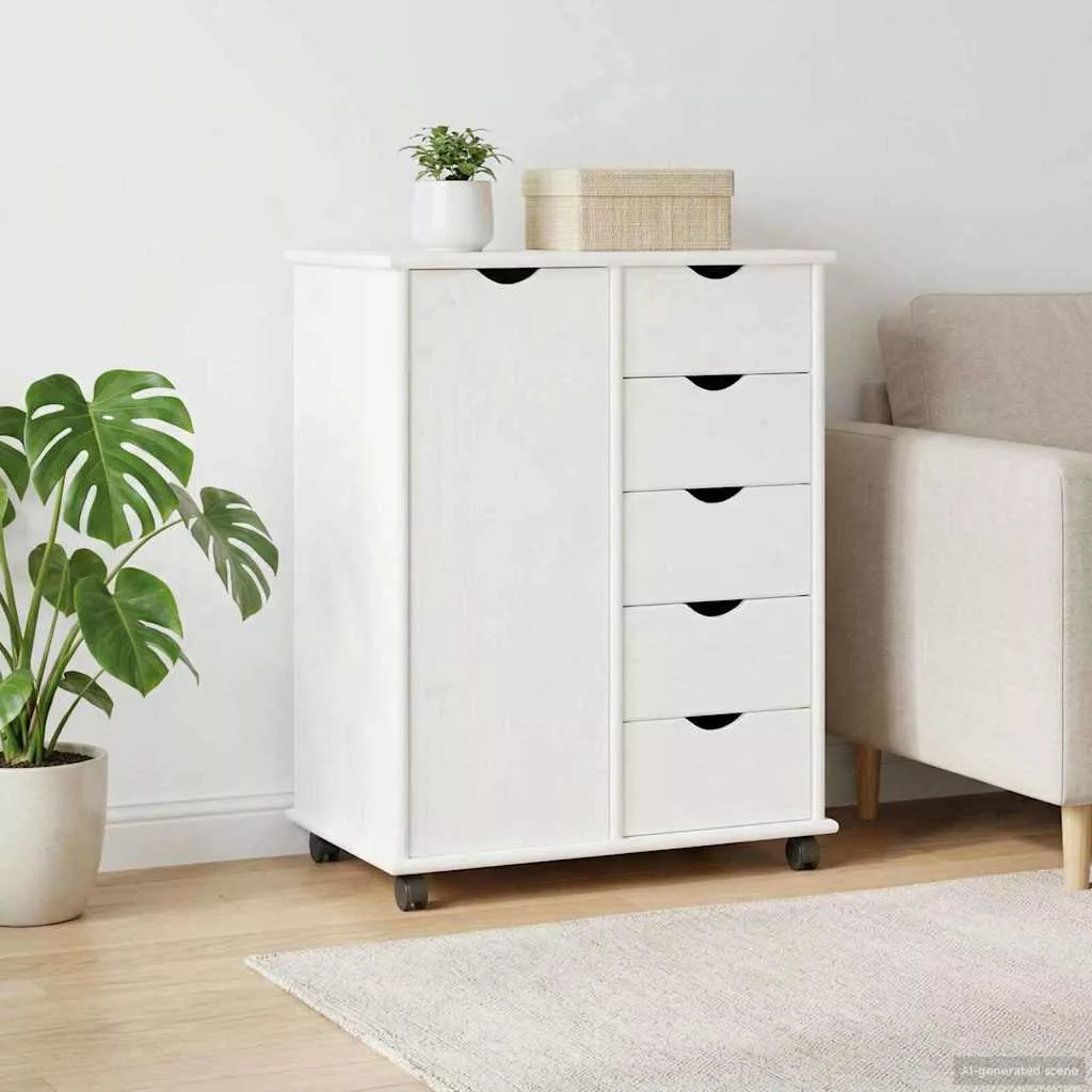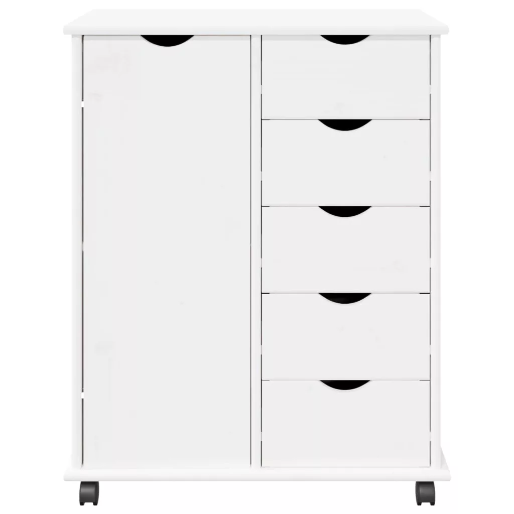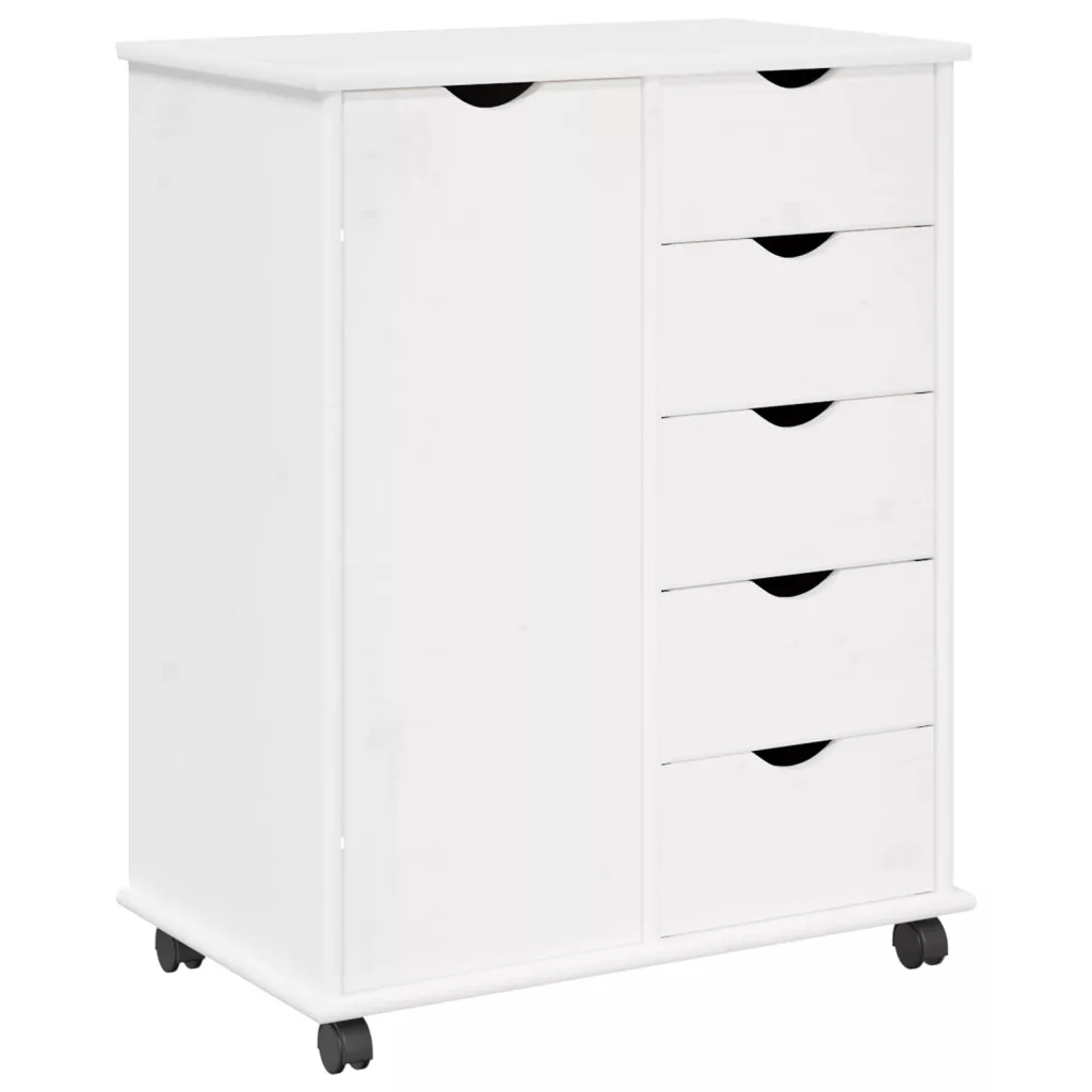 Görgős szekrény kerékkel Fehér 63,5 x 39 x 79 cm Tömör fenyőfa