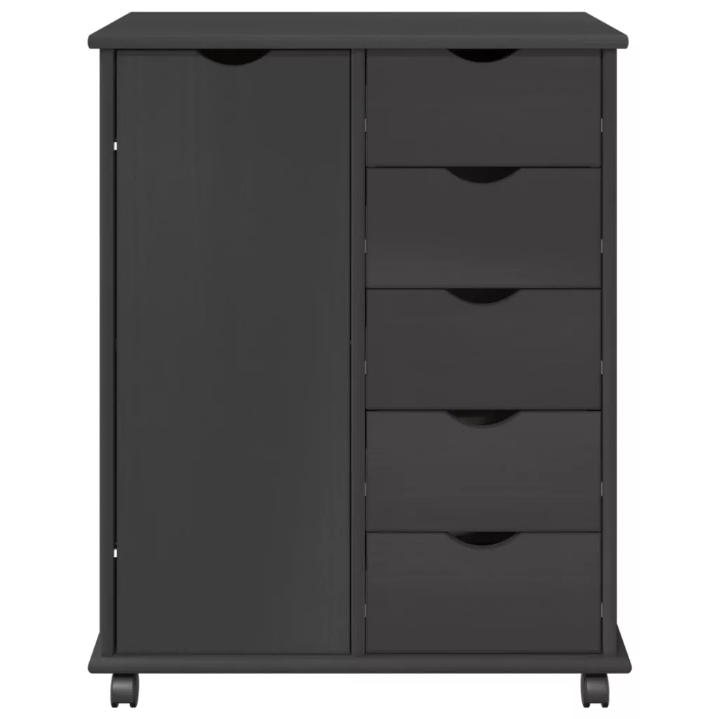 Görgős szekrény kerékkel Szürke 63,5 x 39 x 79 cm Tömör fenyőfa