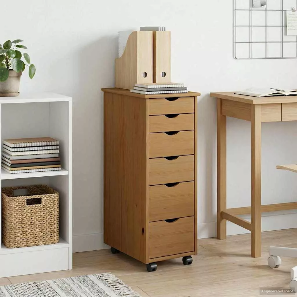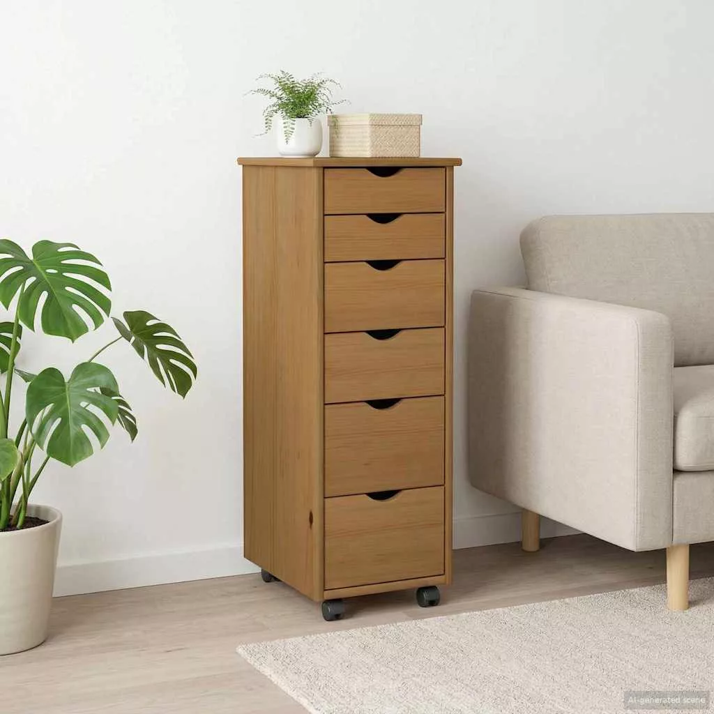 Ez a minimalista gördíthető szekrény egy szuper sokoldalú bútordarab, ami a praktikusságot és a stílust egyaránt kombinálja. Ideális a városi élethez, elegáns formája pedig passen a különféle belső dekorációkhoz. A gördíthető funkciója extra praktikus és könnyen mozgatható, tökéletes választás otthoni irodához, hálószobához vagy nappalihoz. Használhatod önálló darabként is, vagy olyan bútordarabok mellett, amik már megvannak, mert igazán diszkrét és mégis elegáns a megjelenése. Tömör fenyőfa szerkezet Ez a gördíthető szekrény tömör fenyőfából készült, ami szuper tartós és hosszú élettartamú. Az anyag időtlen megjelenést ad, kiemeli a fa szépségét és természetes erezetét, miközben ellenáll a mindennapi használatnak. Ez biztosítja, hogy a szekrény stabil legyen, és meleg légkört teremtsen bárhol. Funkcionális tárolóhely A szekrény több kihúzható fiókot tartalmaz, ami rengeteg helyet kínál különböző tárgyak, mint irodai kellékek, ruhák vagy apróságok rendszerezésére. Minden fiók simán csúszik, szóval könnyen hozzáférhetsz a benne lévőkhöz. Ezek a fiókok segítenek rendben tartani a teret, távol tartják a rendetlenséget. Simán gördülő kerekek Négy görgője páratlan mobilitást biztosít. Könnyedén mozgathatod a lakásban, nehéz emelés nélkül, ideális olyan helyekre, ahol mozgékony bútorok szükségesek. A görgők fokozzák a használhatóságot, lehetővé téve, hogy a szekrény több funkciót is ellásson a szobákban. Minimalista dizájn Visszafogott, elegáns megjelenésével a szekrény könnyedén illeszkedik bármilyen szobához, legyen az modern vagy klasszikus. Ez a dizájn biztosítja, hogy a bútor ne csak praktikus legyen, hanem hozzájáruljon a stílusos környezethez is. Egyszerű karbantartás A szekrény szépségének megőrzése egyszerű, csak egy nedves rongyra van szükséged, hogy letisztítsd, és eltüntesd a port és a foltokat. Ez a könnyen karbantartható dizájn ideális a forgalmas életmódban élőknek vagy nagy forgalmú helyekre.