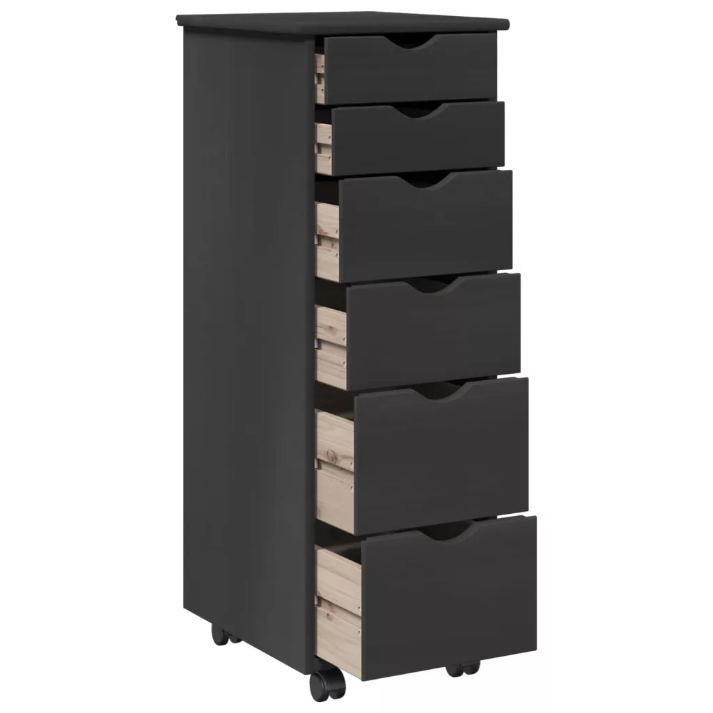 Görgős szekrény kerékkel Szürke 34 x 39 x 93,5 cm Tömör fenyőfa