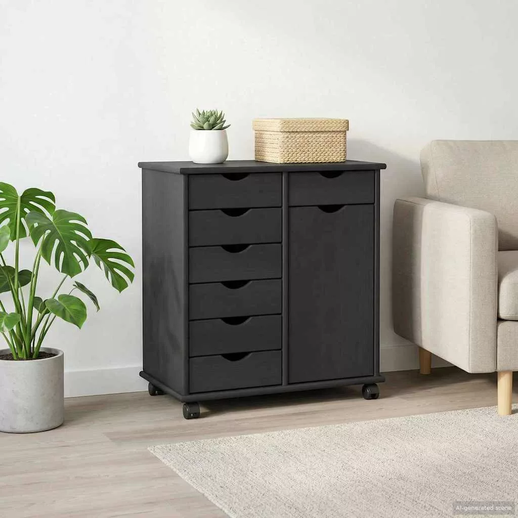 Ez a minimalista gördíthető szekrény funkcionális tárolási megoldásokat kínál polcokkal és fiókokkal, így könnyen variálható kiegészítője lehet bármilyen helyiségnek, akár dolgozószobáról, otthoni irodáról, hálószobáról vagy nappaliról van szó. A letisztult, téglalap alakú formája és egyszerű dizájnja jól illik a modern belső térhez, anélkül, hogy elterelné a figyelmet a dekorációról. A tömör fenyőfa szerkezete és a könnyű mozgathatósága miatt ez a szekrény bármilyen dinamikus térhez alkalmazkodik, elősegítve a felszabadult helyet. Tömör fenyőfa: Teljesen tömör fenyőfából készült, így erős és esztétikus. Az anyag tartósságot ad, emellett a szép erezettel egyedi stílust kölcsönöz, ami illeszkedik a különböző décorokhoz. Praktikus rekeszek: Beépített polcok és kihúzható fiókok rendelkezésre állnak, hogy hatékonyan rendszerezd a dolgaidat. A polcok könnyen tárolják a könyveket, elektronikai eszközöket vagy éppen dekorációs kiegészítőket, míg a fiókok gyors hozzáférést biztosítanak a lényeges dolgokhoz. Tartós megoldás: Zsanéros ajtókkal és süllyesztett fogantyúkkal készült, így minimalista megjelenést kínál. A matt felület csökkenti a tükröződést, miközben megőrzi az elegáns kinézetet. Az ajtók és fogantyúk megjelenése kiváló teherbírást ad a szekrénynek, biztosítva a megbízhatóságot. Mobilis design: Kerekekkel ellátott, így könnyedén mozgatható ott, ahol éppen szükséged van rá. Ideális dinamikus helyszínekhez, akár szobák átrendezésére van szükség kreatív munka közben, akár vendégek fogadásához. Könnyű karbantartás: Minimális karbantartást igényel. Csak nedves ruhával kell letörölni, és kerüld a durva vegyszereket. Az egyszerű dizájn lehetővé teszi, hogy anélkül tartsd tisztán, hogy túl sok energiát kellene belefektetned.