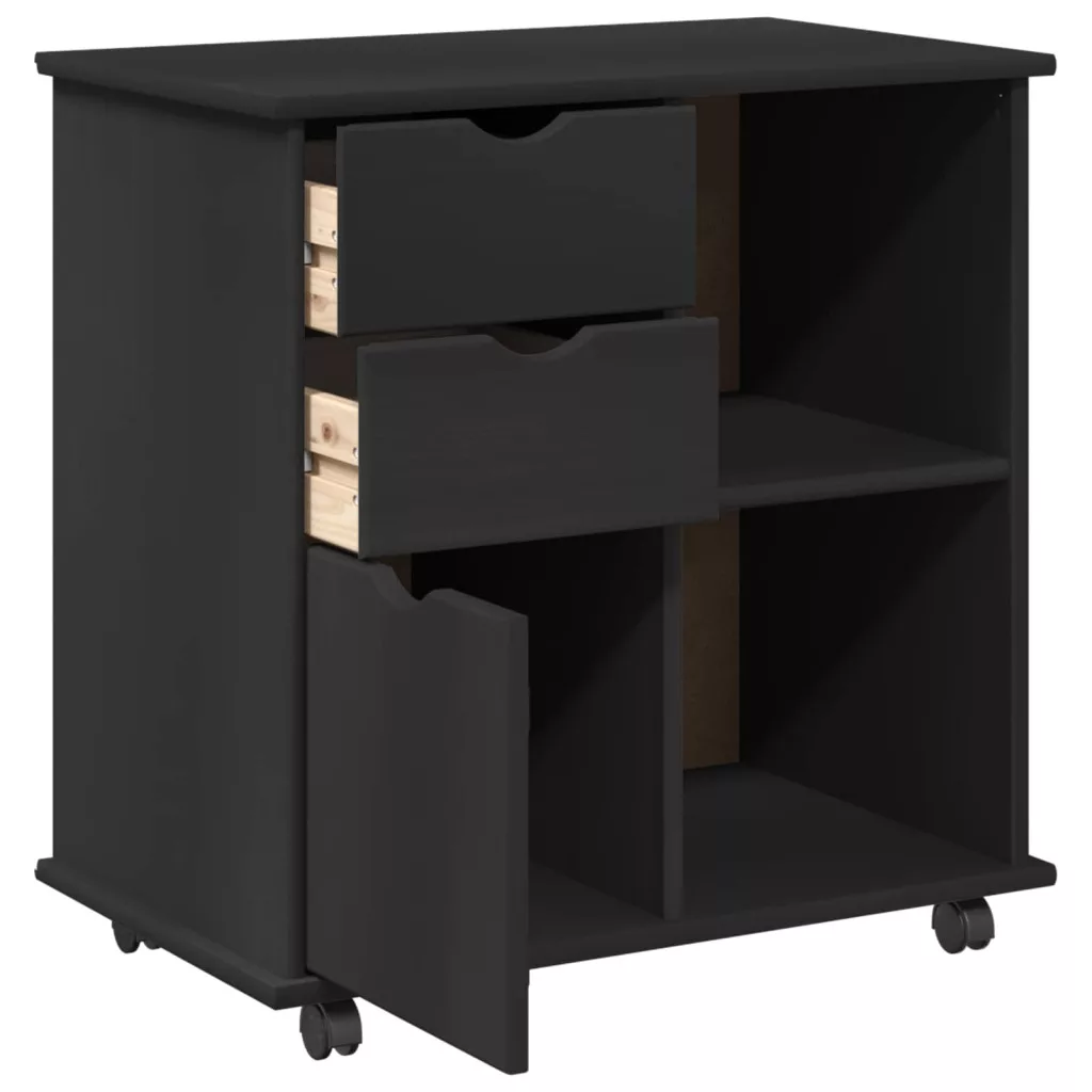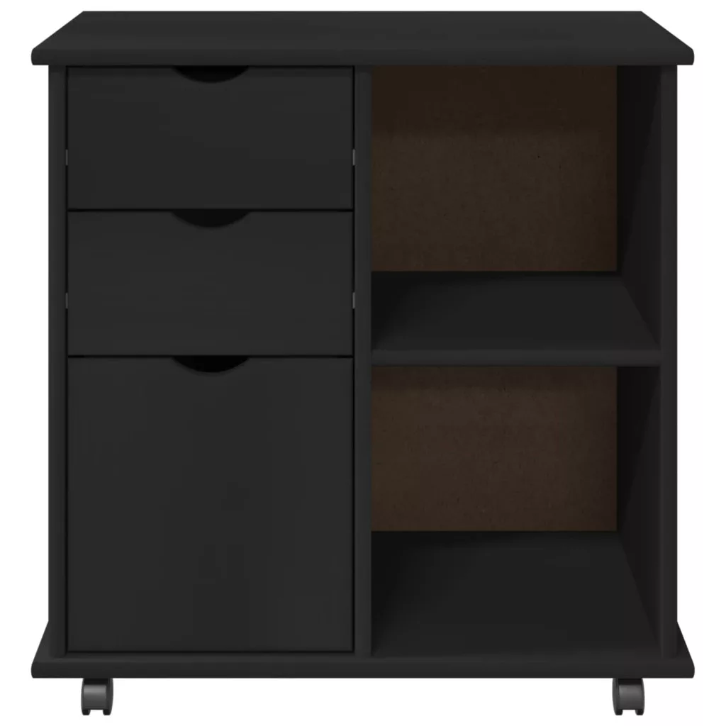Görgős szekrény Fekete 63,5 x 39 x 65,5 cm Tömör fenyőfa