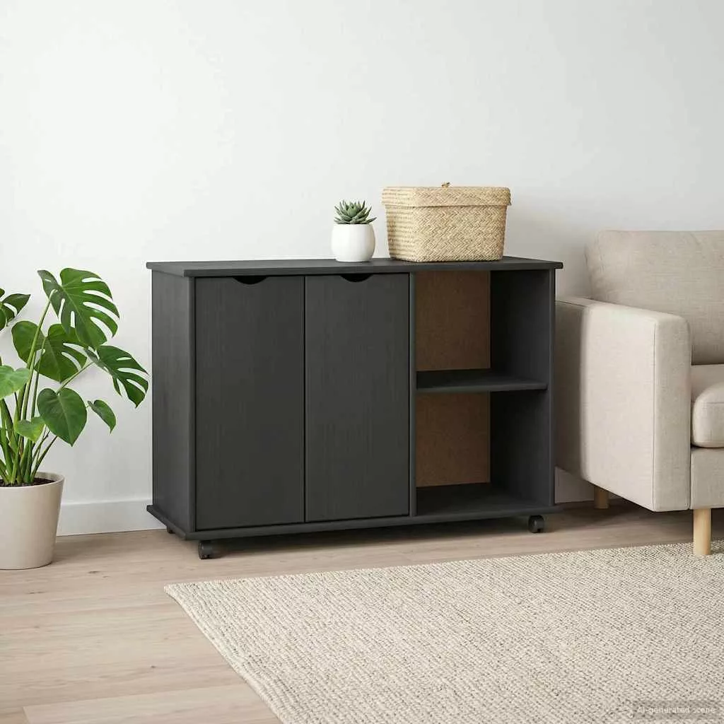 Görgős szekrény Szürke 100 x 39 x 65,5 cm Tömör fenyőfa