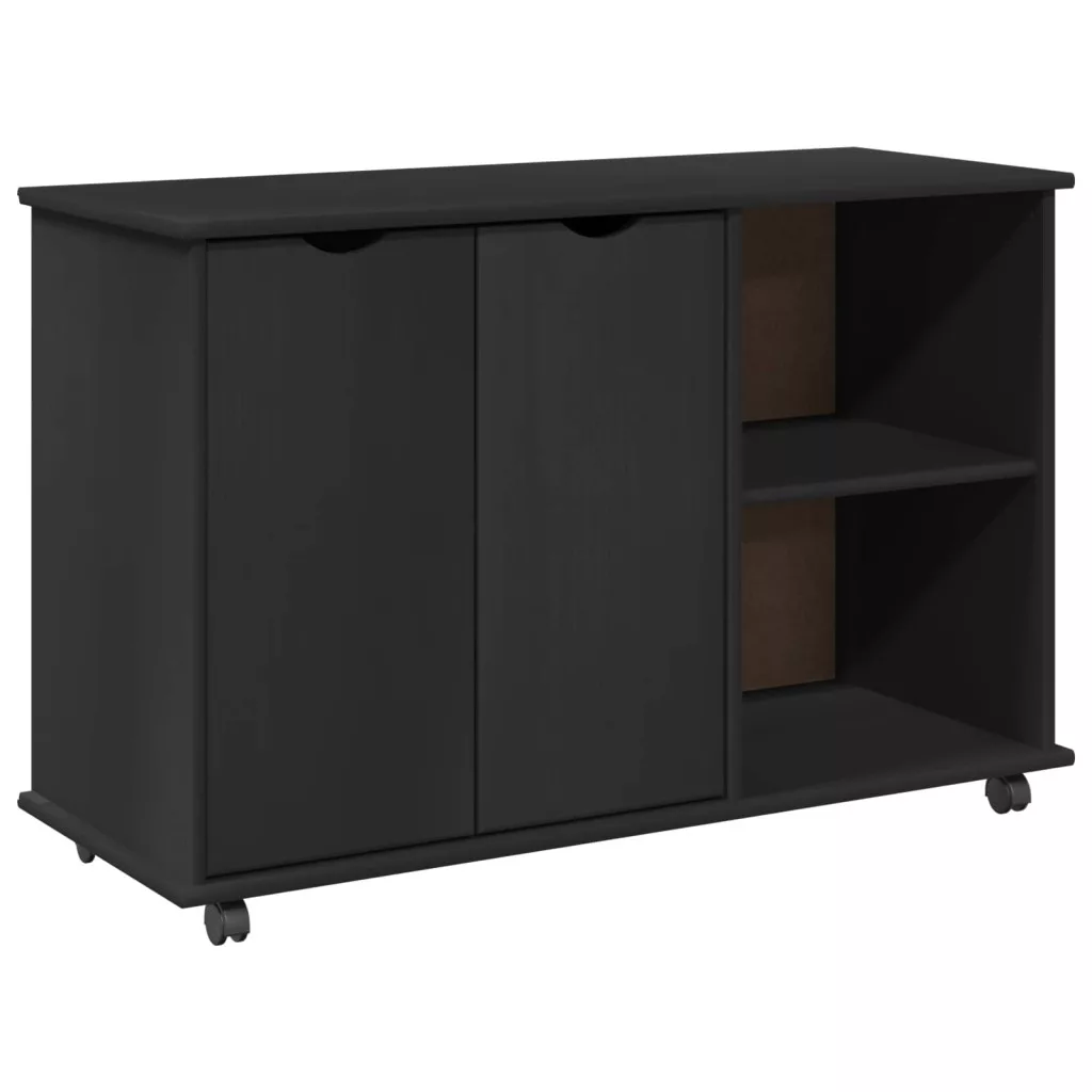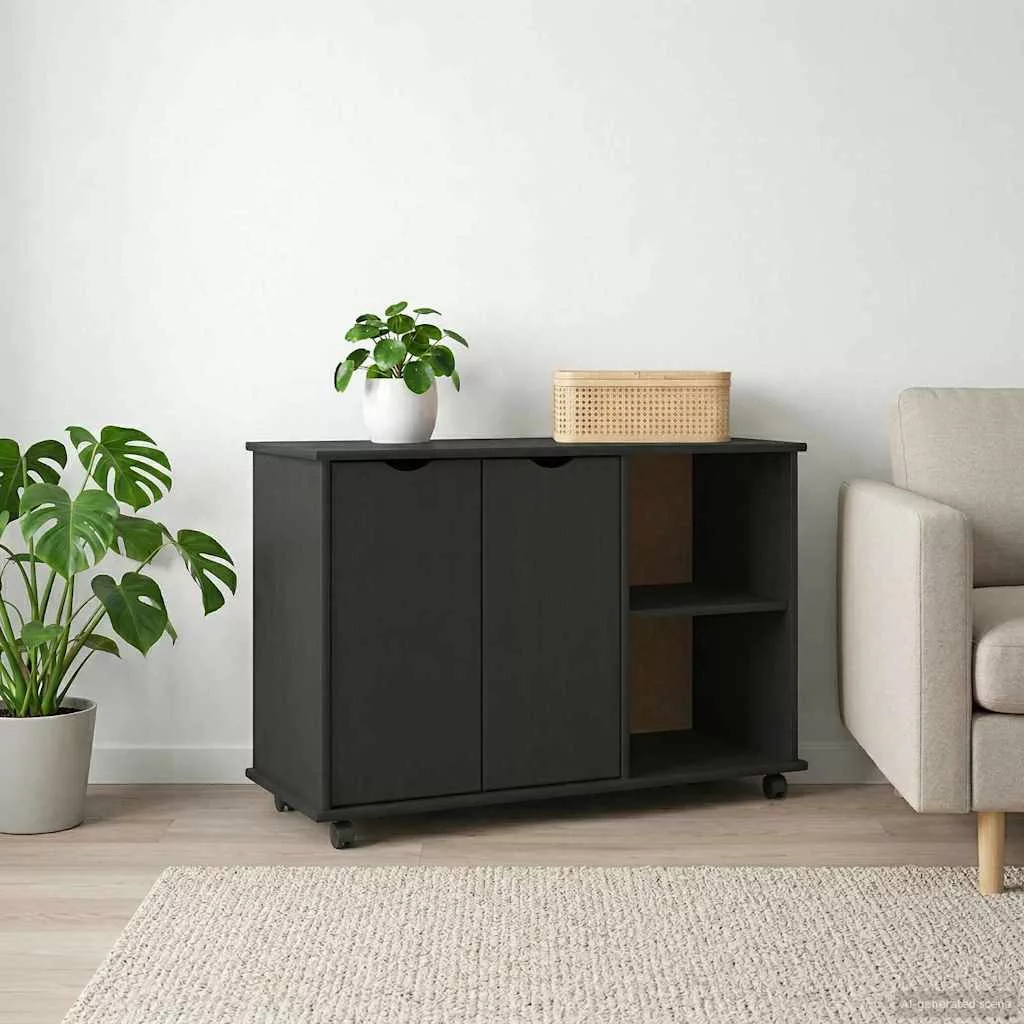Görgős szekrény Fekete 100 x 39 x 65,5 cm Tömör fenyőfa