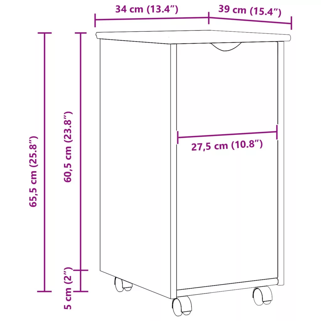 Görgős szekrény kerékkel Barna 34 x 39 x 65,5 cm Tömör fenyőfa