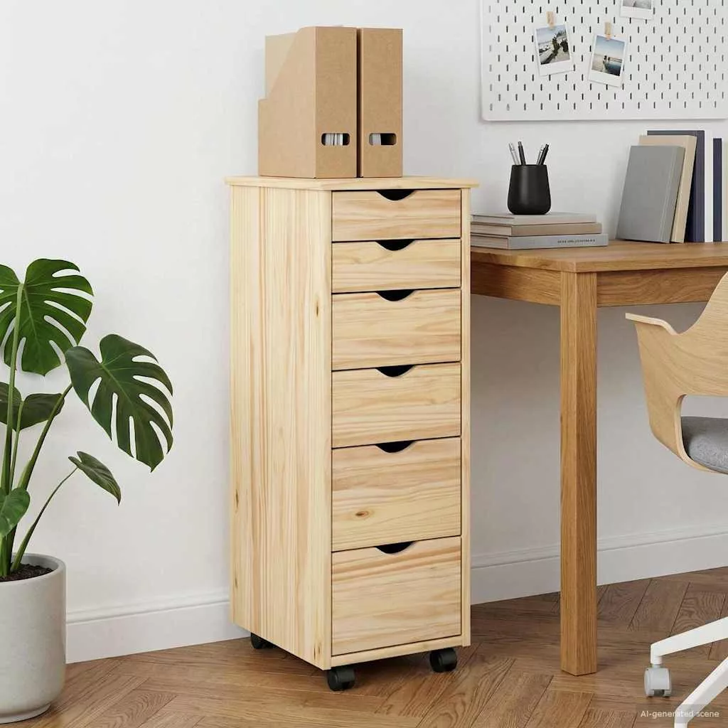 Ez a minimalista gördíthető szekrény egy szuper sokoldalú bútordarab, ami a praktikusságot és a stílust egyaránt kombinálja. Ideális a városi élethez, elegáns formája pedig passen a különféle belső dekorációkhoz. A gördíthető funkciója extra praktikus és könnyen mozgatható, tökéletes választás otthoni irodához, hálószobához vagy nappalihoz. Használhatod önálló darabként is, vagy olyan bútordarabok mellett, amik már megvannak, mert igazán diszkrét és mégis elegáns a megjelenése. Tömör fenyőfa szerkezet Ez a gördíthető szekrény tömör fenyőfából készült, ami szuper tartós és hosszú élettartamú. Az anyag időtlen megjelenést ad, kiemeli a fa szépségét és természetes erezetét, miközben ellenáll a mindennapi használatnak. Ez biztosítja, hogy a szekrény stabil legyen, és meleg légkört teremtsen bárhol. Funkcionális tárolóhely A szekrény több kihúzható fiókot tartalmaz, ami rengeteg helyet kínál különböző tárgyak, mint irodai kellékek, ruhák vagy apróságok rendszerezésére. Minden fiók simán csúszik, szóval könnyen hozzáférhetsz a benne lévőkhöz. Ezek a fiókok segítenek rendben tartani a teret, távol tartják a rendetlenséget. Simán gördülő kerekek Négy görgője páratlan mobilitást biztosít. Könnyedén mozgathatod a lakásban, nehéz emelés nélkül, ideális olyan helyekre, ahol mozgékony bútorok szükségesek. A görgők fokozzák a használhatóságot, lehetővé téve, hogy a szekrény több funkciót is ellásson a szobákban. Minimalista dizájn Visszafogott, elegáns megjelenésével a szekrény könnyedén illeszkedik bármilyen szobához, legyen az modern vagy klasszikus. Ez a dizájn biztosítja, hogy a bútor ne csak praktikus legyen, hanem hozzájáruljon a stílusos környezethez is. Egyszerű karbantartás A szekrény szépségének megőrzése egyszerű, csak egy nedves rongyra van szükséged, hogy letisztítsd, és eltüntesd a port és a foltokat. Ez a könnyen karbantartható dizájn ideális a forgalmas életmódban élőknek vagy nagy forgalmú helyekre.