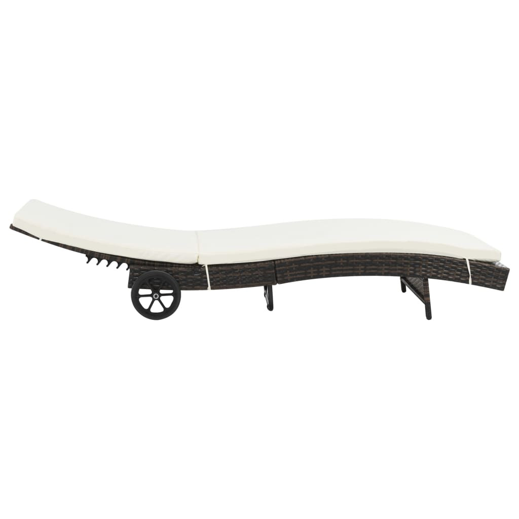 barna polyrattan napozóágy párnával és kerekekkel