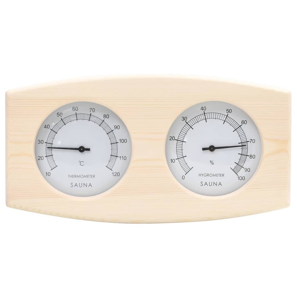 Ez a fából készült 2 az 1-ben szauna-higrotermográf és -homokóra a szauna elengedhetetlen kelléke. Kényelmesebb szaunázást tesz lehetővé. Elengedhetetlen szaunahőmérő és -higrométer: A szauna hőmérsékletének és páratartalmának szabályozása rendkívül fontos. A szaunahőmérővel és a higrométerrel egyszerűen és pontosan mérheti a páratartalmat és a hőmérsékletet.Hőálló üveg: A hőálló üveggel rendelkező szauna-higrotermográf és -homokóra ellenáll a szauna forró és párás környezetének.15 perces homokóra: a szaunázás népszerű ideje 15 perc. A forgó időzítő 5 és 10 perces közelítő jelzésekkel is el van látva a rövidebb periódusokhoz.Tartós anyag: A tömör fenyőfa egy gyönyörű természetes anyag. A fenyőfa egyenes erezetű, a csomók pedig jellegzetes, rusztikus megjelenést biztosítanak az anyagnak. A fenyőfából készült hőmérő-higrométer és homokóra tartósabb.