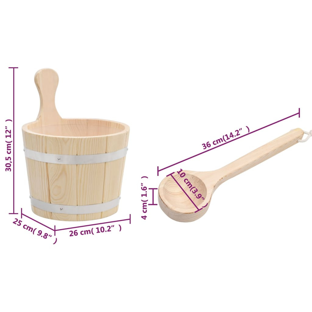 tömör fenyőfa szaunavödör és -merítőkanál