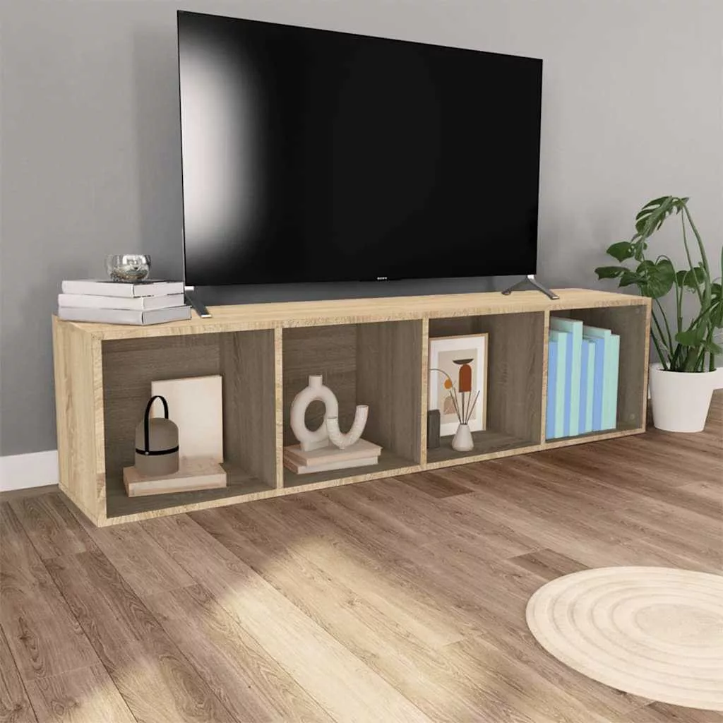 sonoma tölgy színű szerelt fa könyv-/TV-szekrény 36x30x143 cm