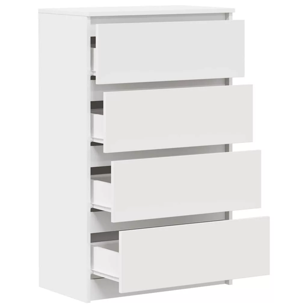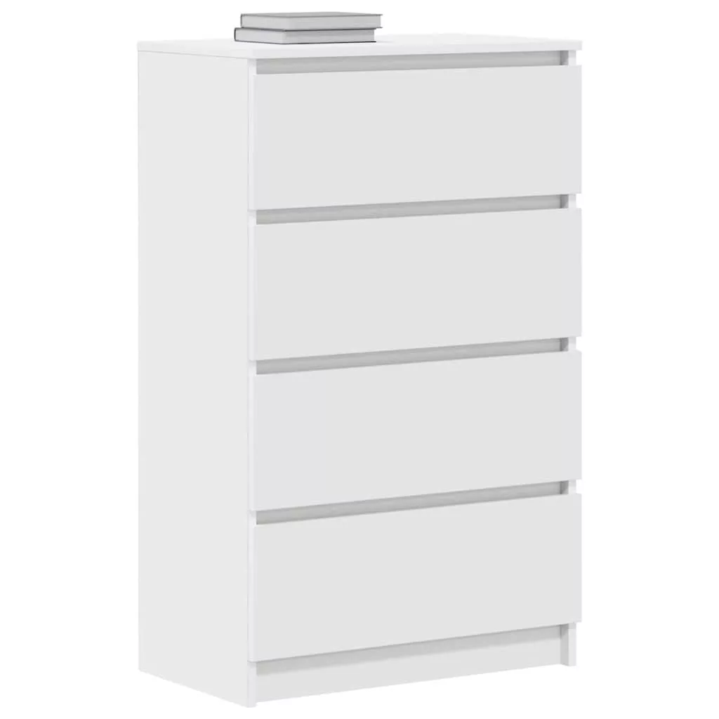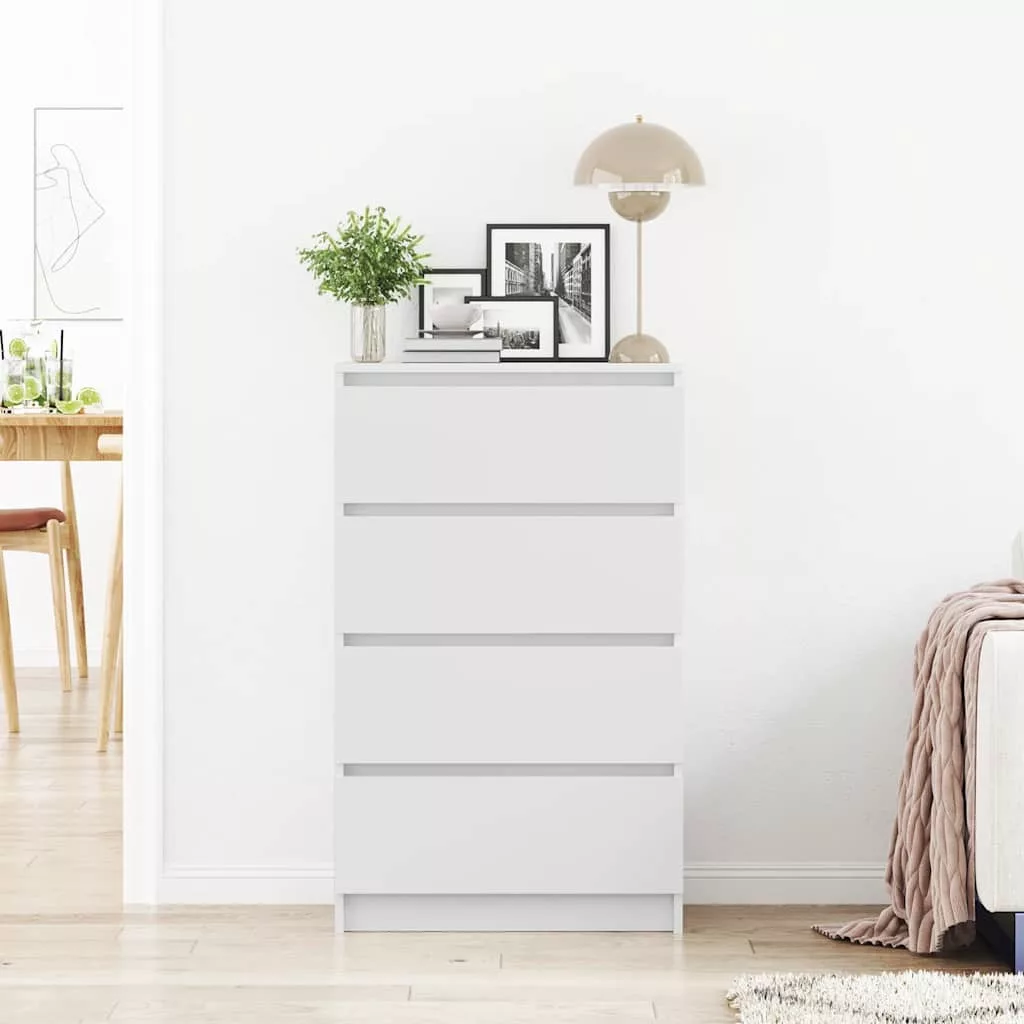 Ez a minimalista stílusú komód nemcsak praktikus, hanem igen dekoratív kiegészítője lesz otthonának A 4 fiókkal rendelkező tálalószekrény bőséges tárolóhelyet biztosít könyvek, multimédiás készülékek és egyéb tárgyak számára. Masszív teteje ideális dísztárgyak, képkeretek vagy cserepes növények megjelenítésére. Komódként, tálalóként stb. is használható. A minőségi szerelt fának köszönhetően igen tartós és strapabíró. A fiókos szekrény nedves ruhával könnyen tisztítható.