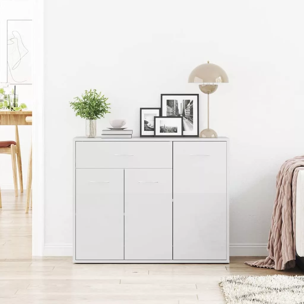 magasfényű fehér szerelt fa tálalószekrény 88 x 30 x 70 cm