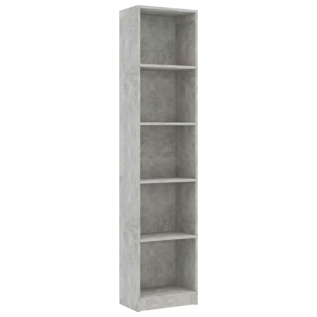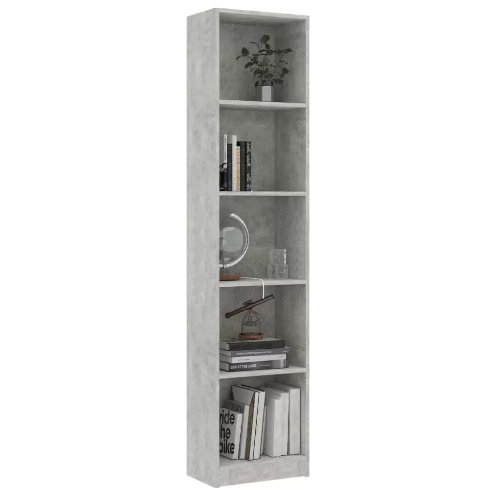 5-szintes betonszürke szerelt fa könyvszekrény 40 x 24 x 175 cm