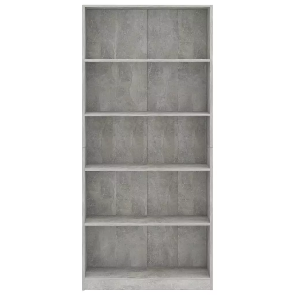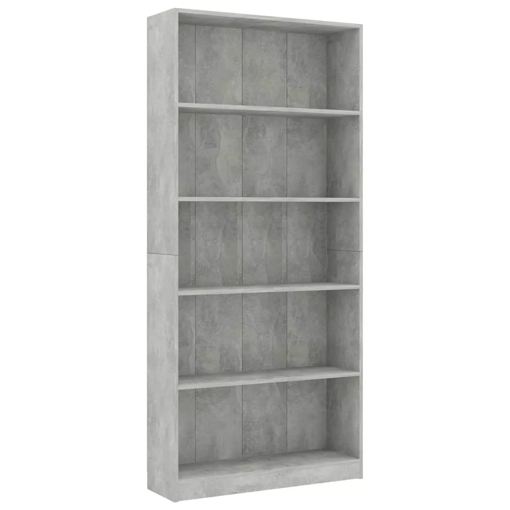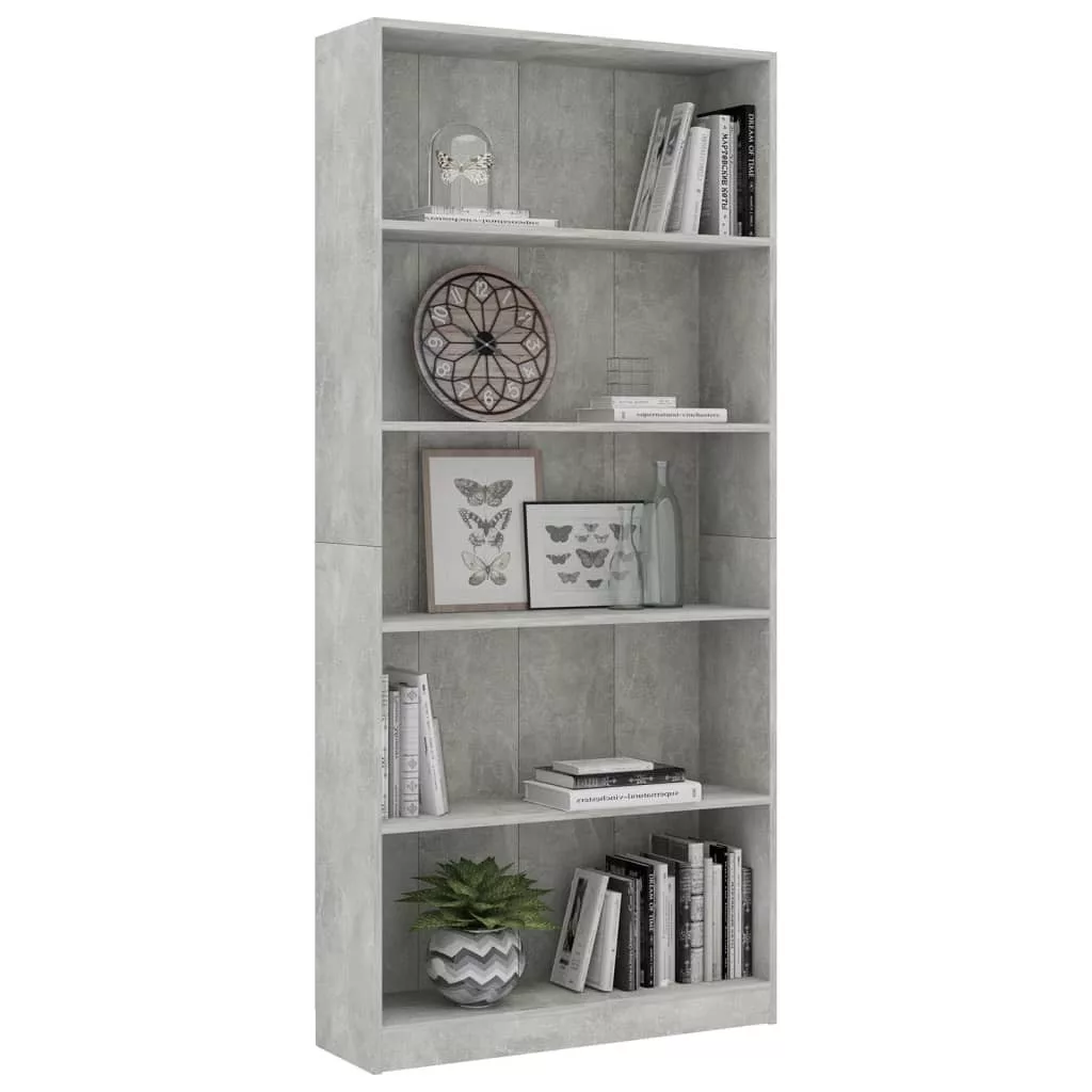 5-szintes betonszürke szerelt fa könyvszekrény 80 x 24 x 175 cm