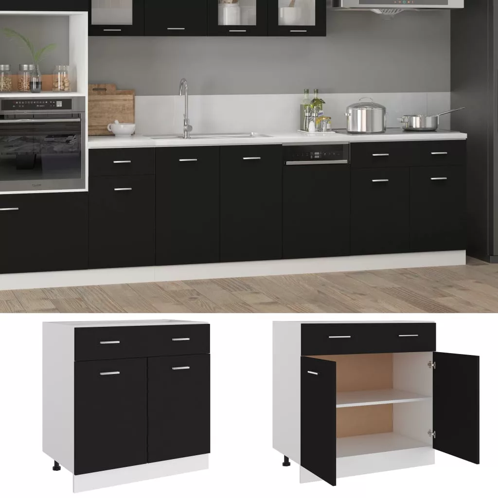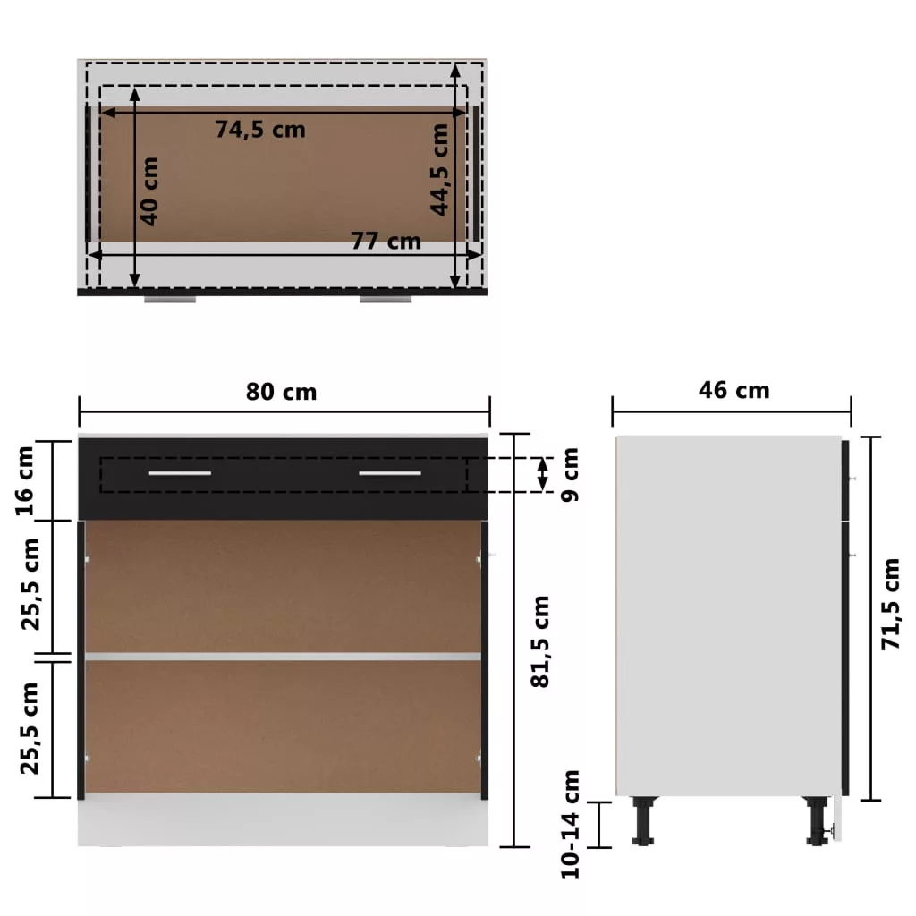 “Lyon” fekete szerelt fa fiókos alsószekrény 80 x 46 x 81,5 cm