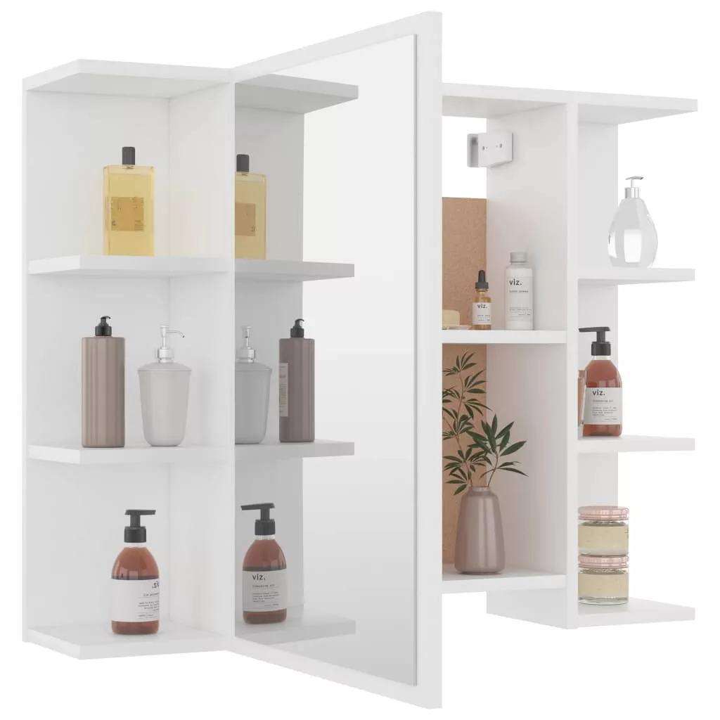 Teremtsen esztétikus, kellemes látványt fürdőszobájában ezzel a tükrös szekrénnyel, mely modern stílust varázsol bármely helyiségbe! A tükrös faliszekrény szerelt fából és akrilból készült, így tartós és stabil. A szekrény 1 ajtóval és összesen 8 rekesszel rendelkezik. A 6 külső rekesz elegendő tárolóhelyet kínál, és ott van a 2 belső is, ha további helyre lenne szükség. Könnyen elfér majd minden lényeges piperecikke és tisztálkodási eszköze, mint például a szappan, sampon, fogkrém stb. Ez a stílusos és funkcionális szekrény biztosan autentikussá és kivételessé teszi szobája lakberendezését!