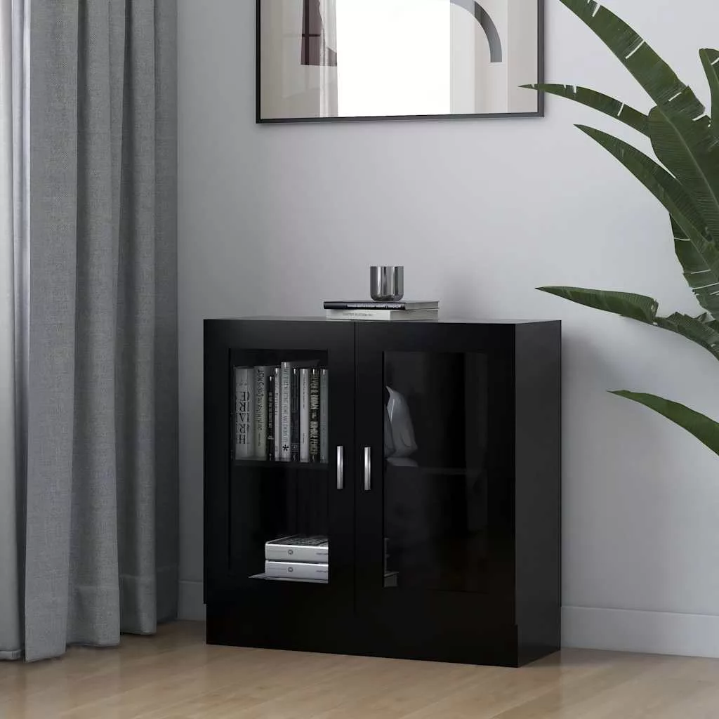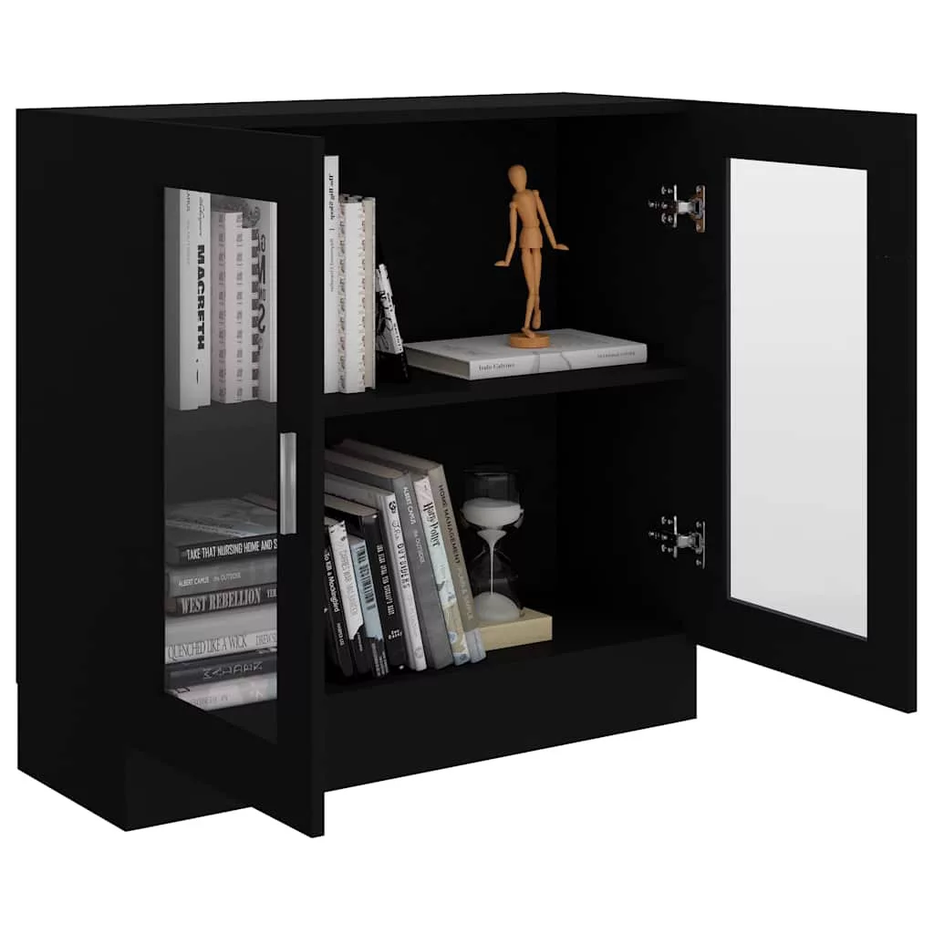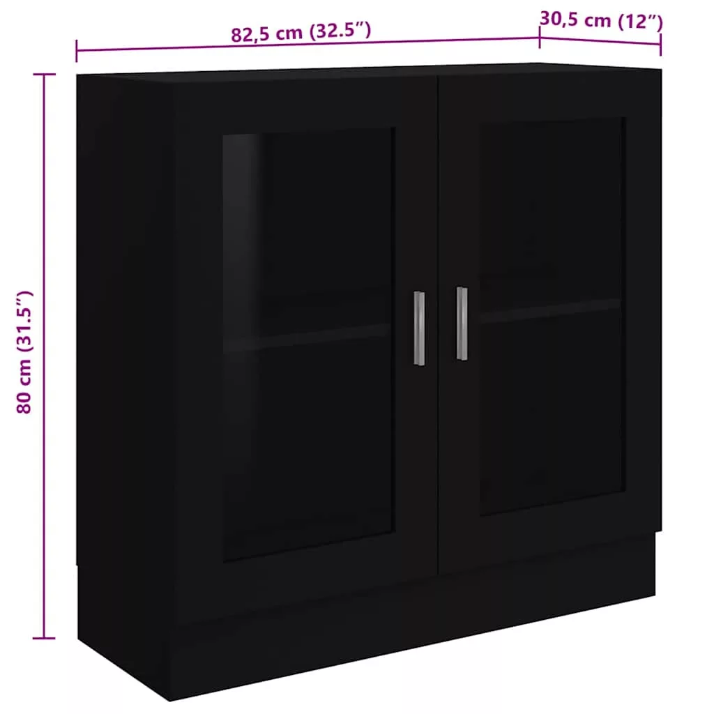 fekete szerelt fa vitrinszekrény 82,5 x 30,5 x 80 cm