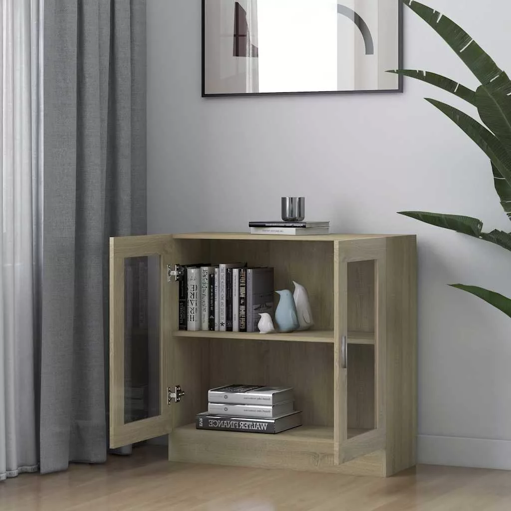 sonoma tölgy színű szerelt fa vitrinszekrény 82,5x30,5x80 cm