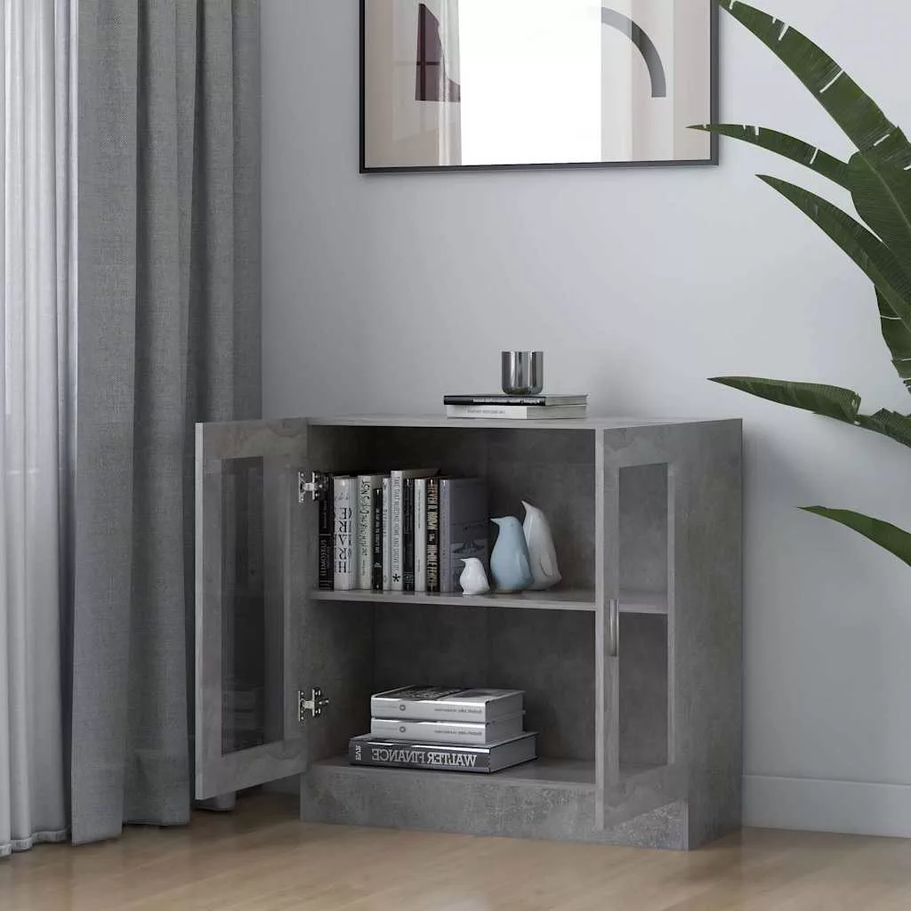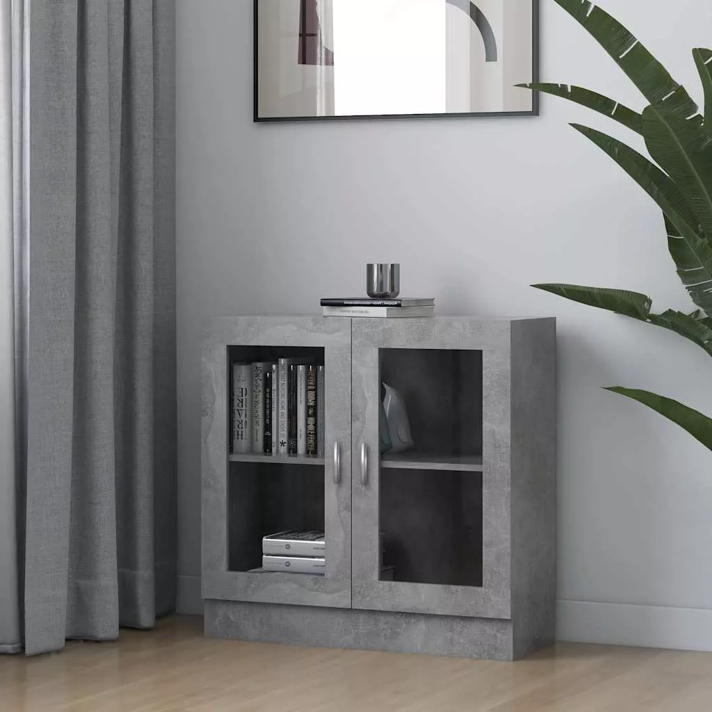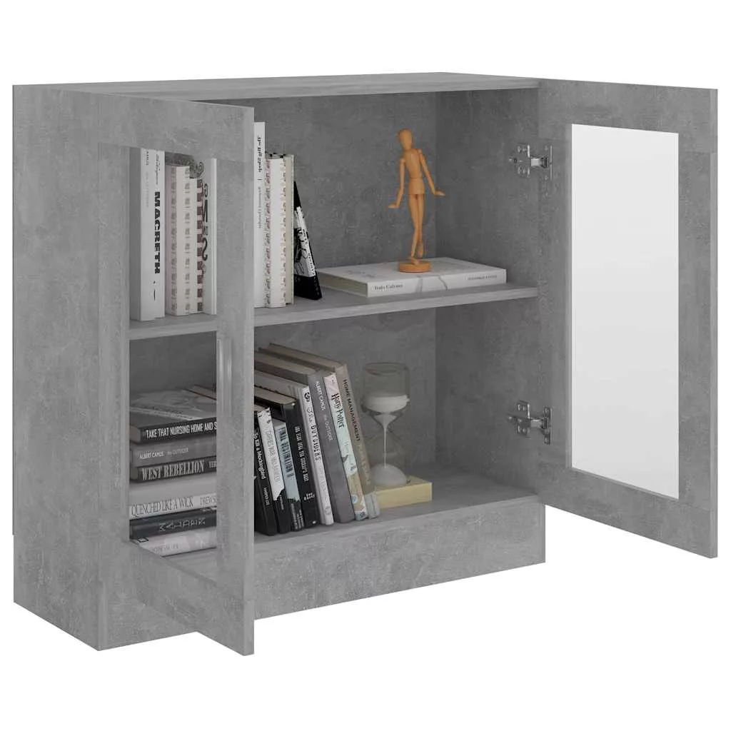 betonszürke szerelt fa vitrinszekrény 82,5 x 30,5 x 80 cm