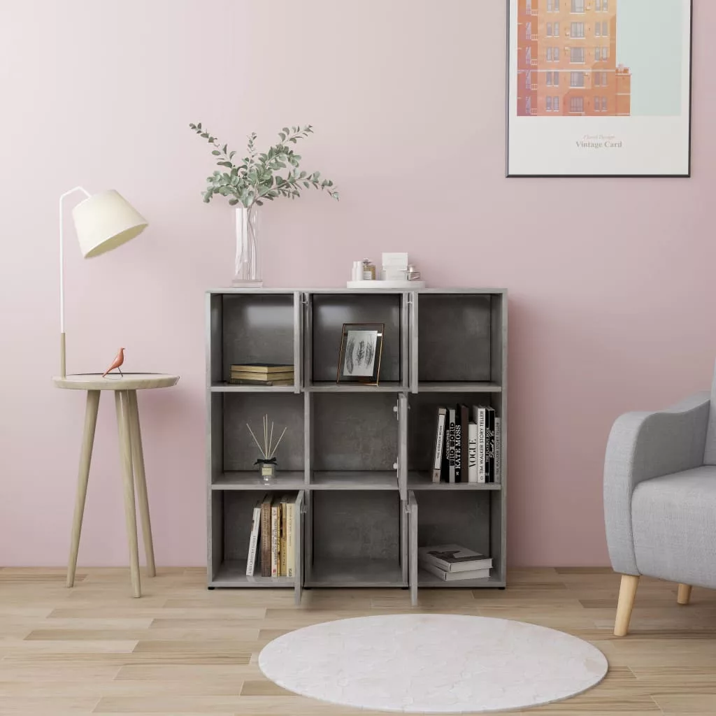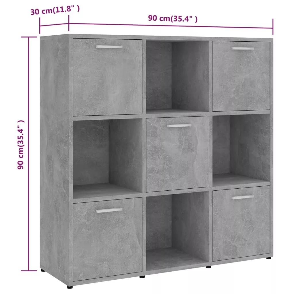 betonszürke szerelt fa könyvszekrény 90 x 30 x 90 cm