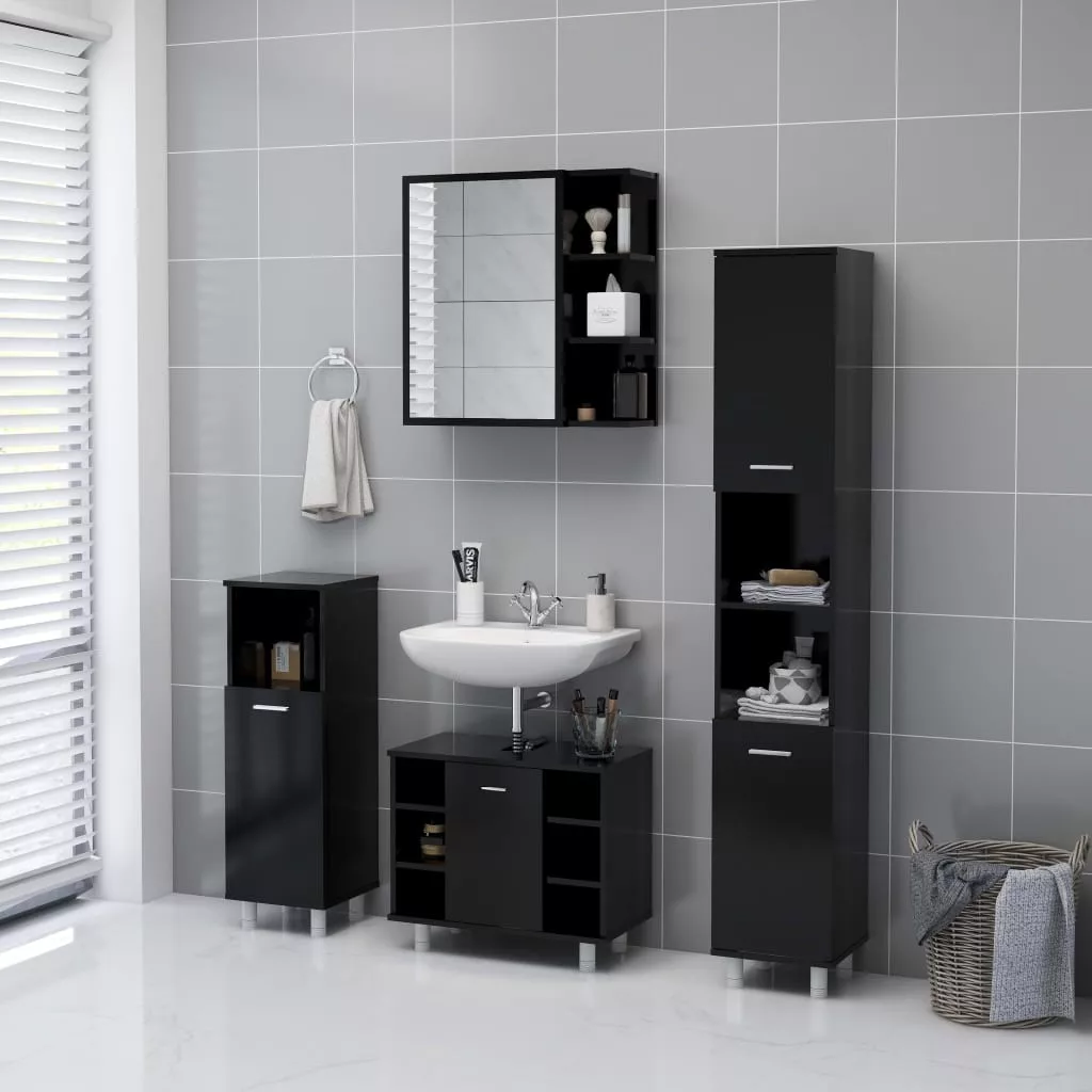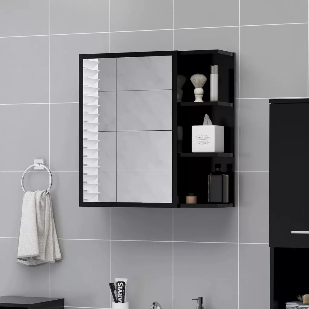 fekete szerelt fa tükrös fürdőszoba szekrény 62,5x20,5x64 cm