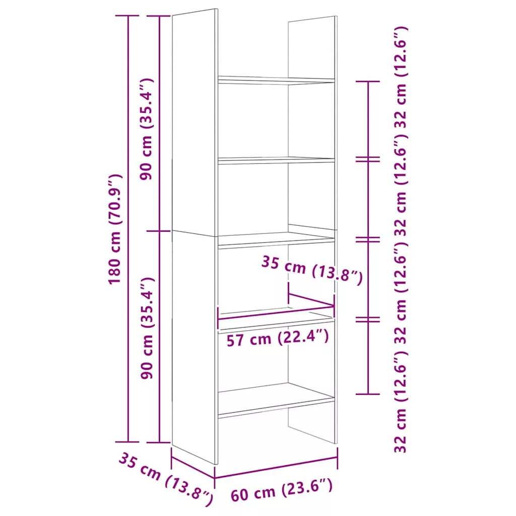 betonszürke szerelt fa könyvszekrény 60 x 35 x 180 cm