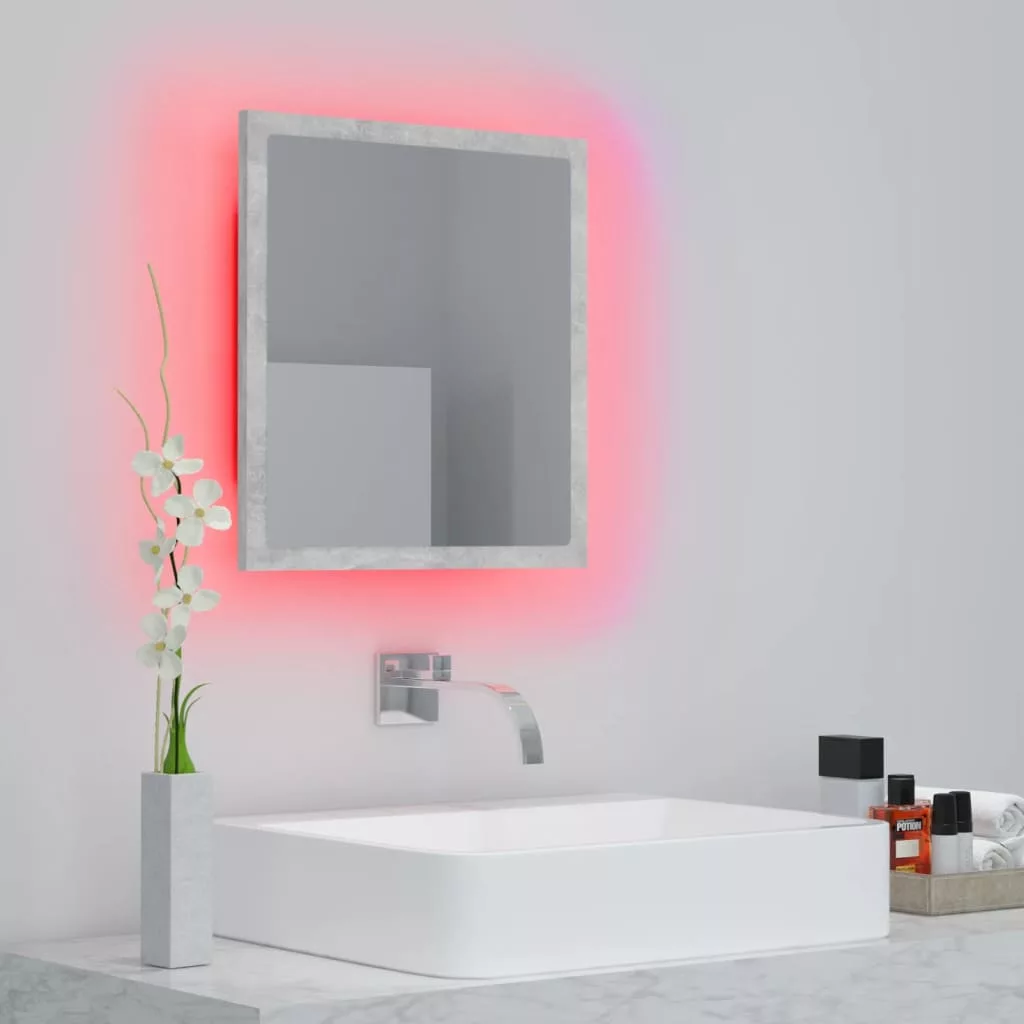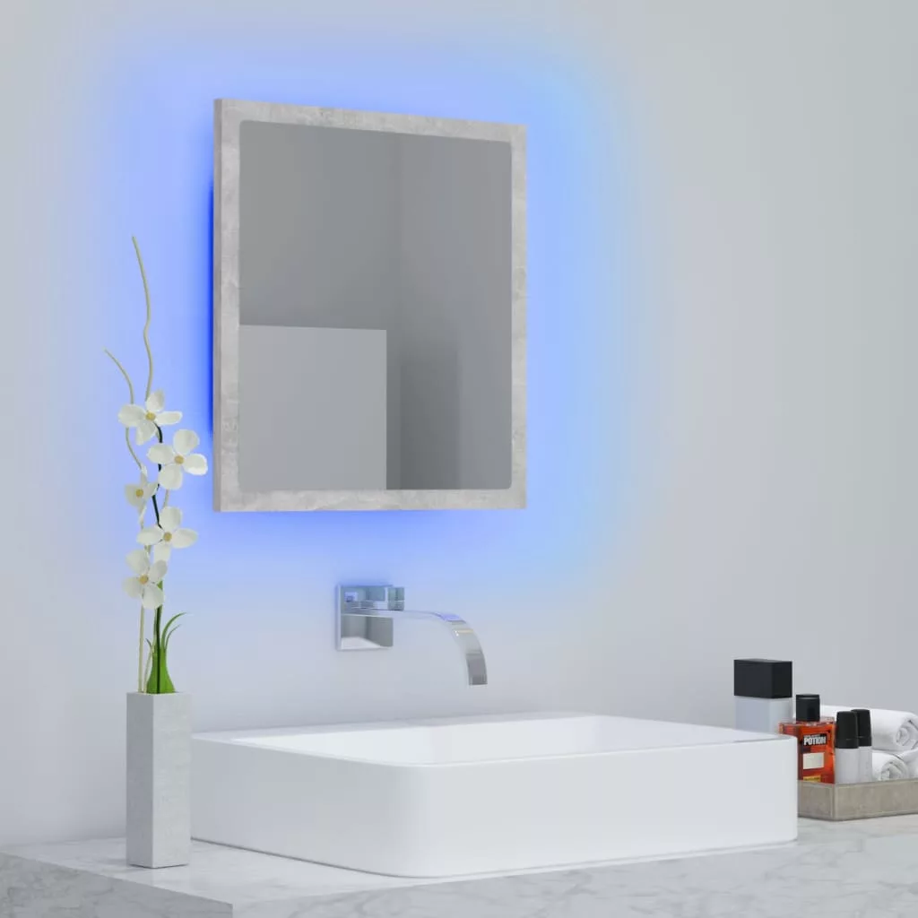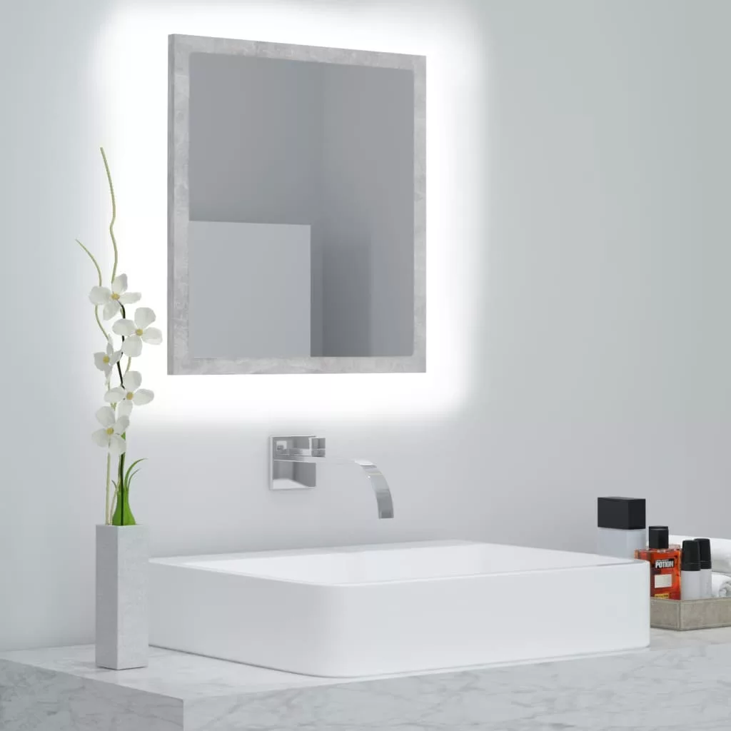 betonszürke akril LED-es fürdőszobatükör 40x8,5x37 cm