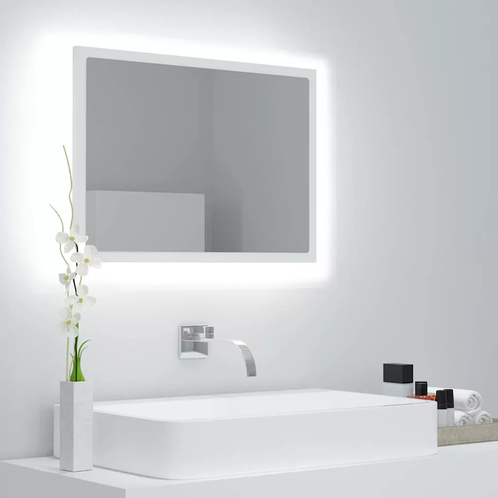 fehér akril LED-es fürdőszobai tükör 60 x 8,5 x 37 cm