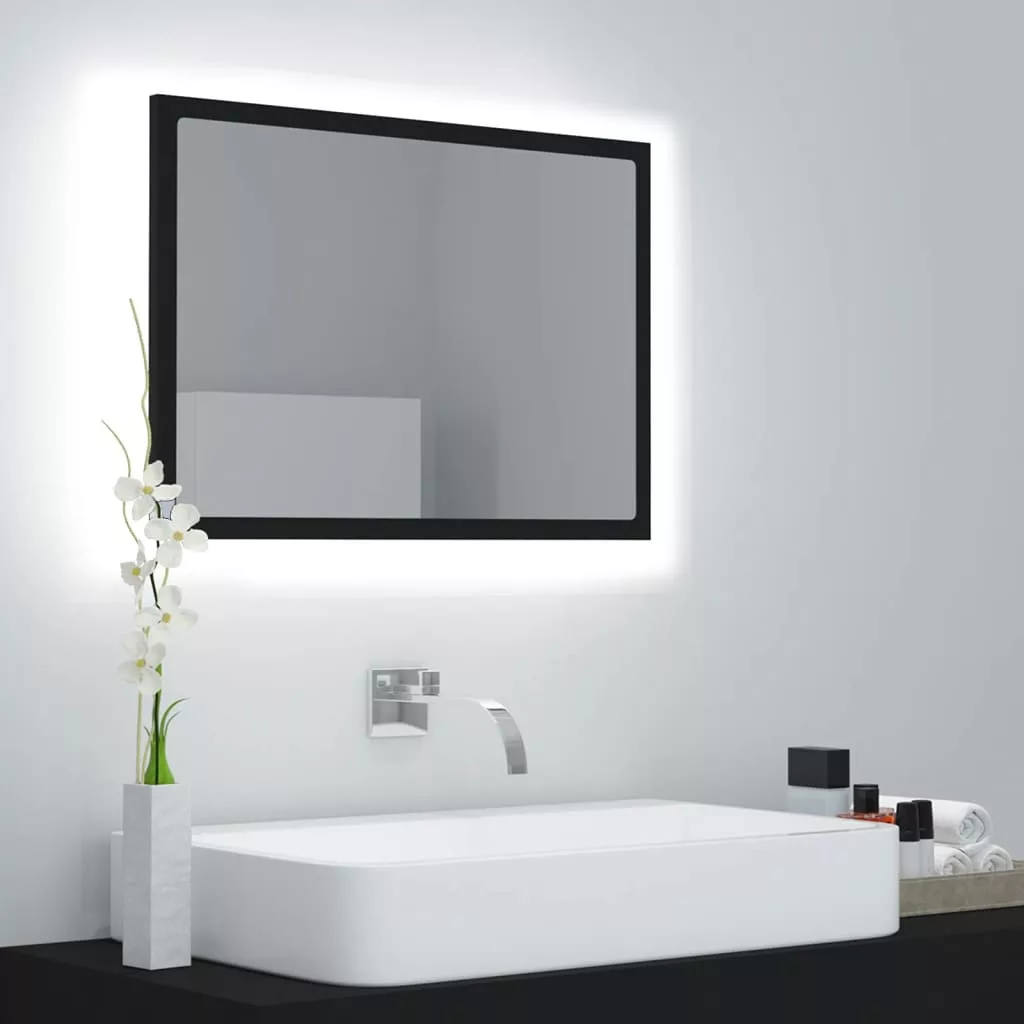 fekete akril LED-es fürdőszobai tükör 60x8,5x37 cm