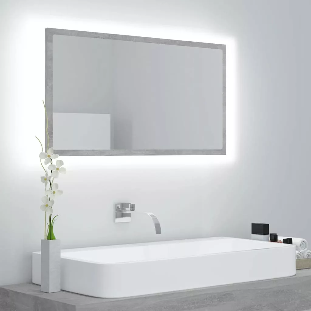 betonszürke akril LED-es fürdőszobatükör 80x8,5x37 cm