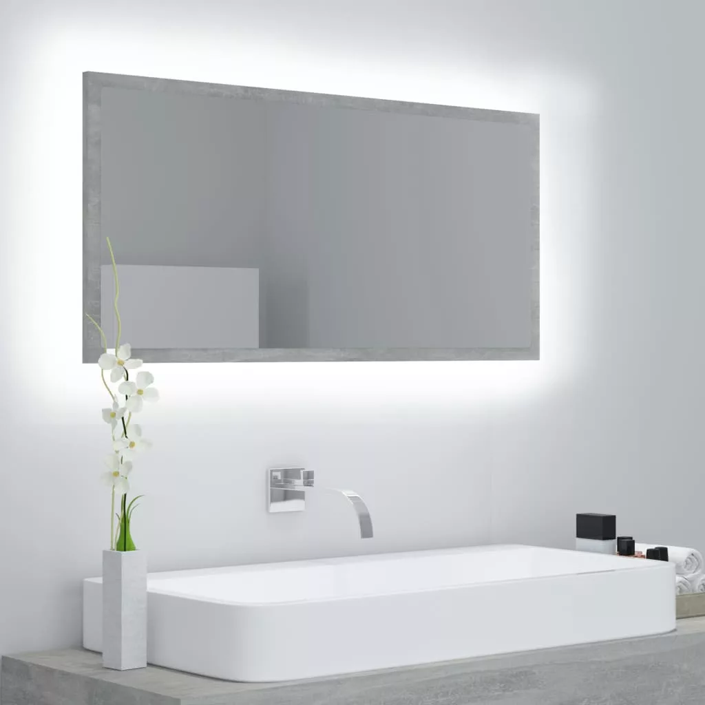 betonszürke akril LED-es fürdőszobatükör 90x8,5x37 cm
