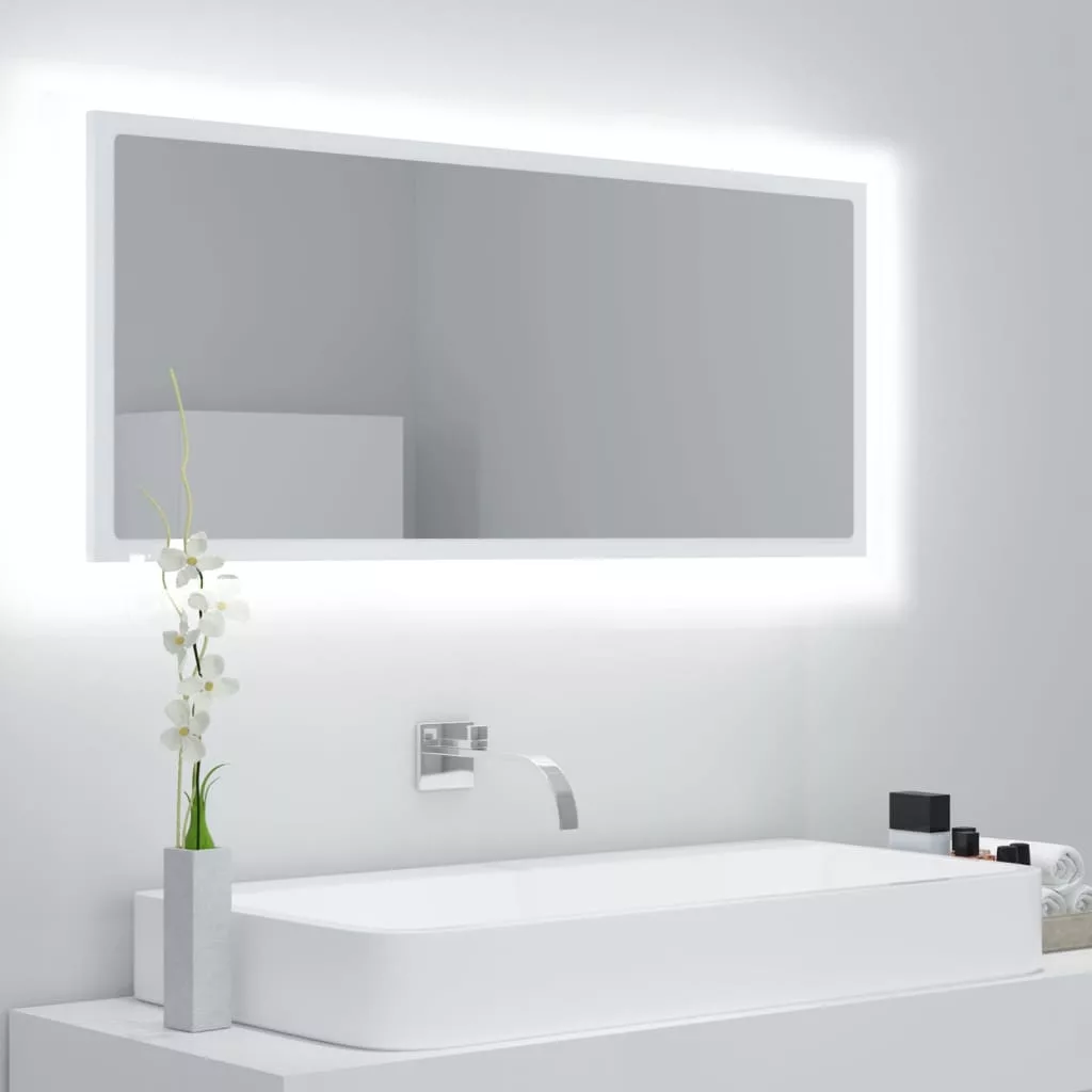 fehér akril LED-es fürdőszobai tükör 100x8,5x37 cm
