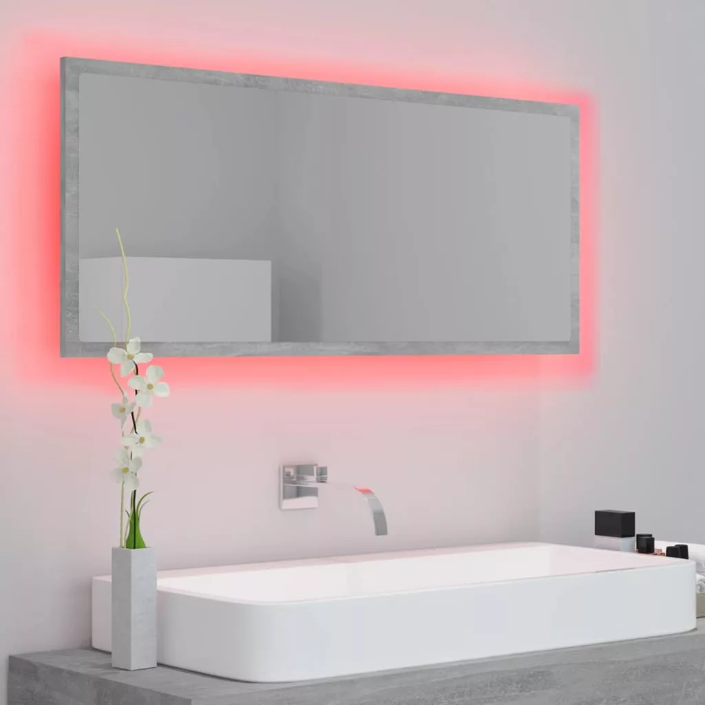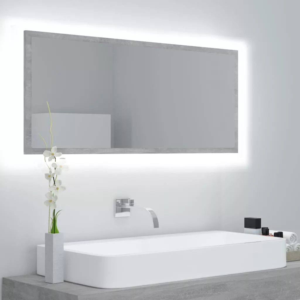 betonszürke akril LED-es fürdőszobatükör 100x8,5x37 cm