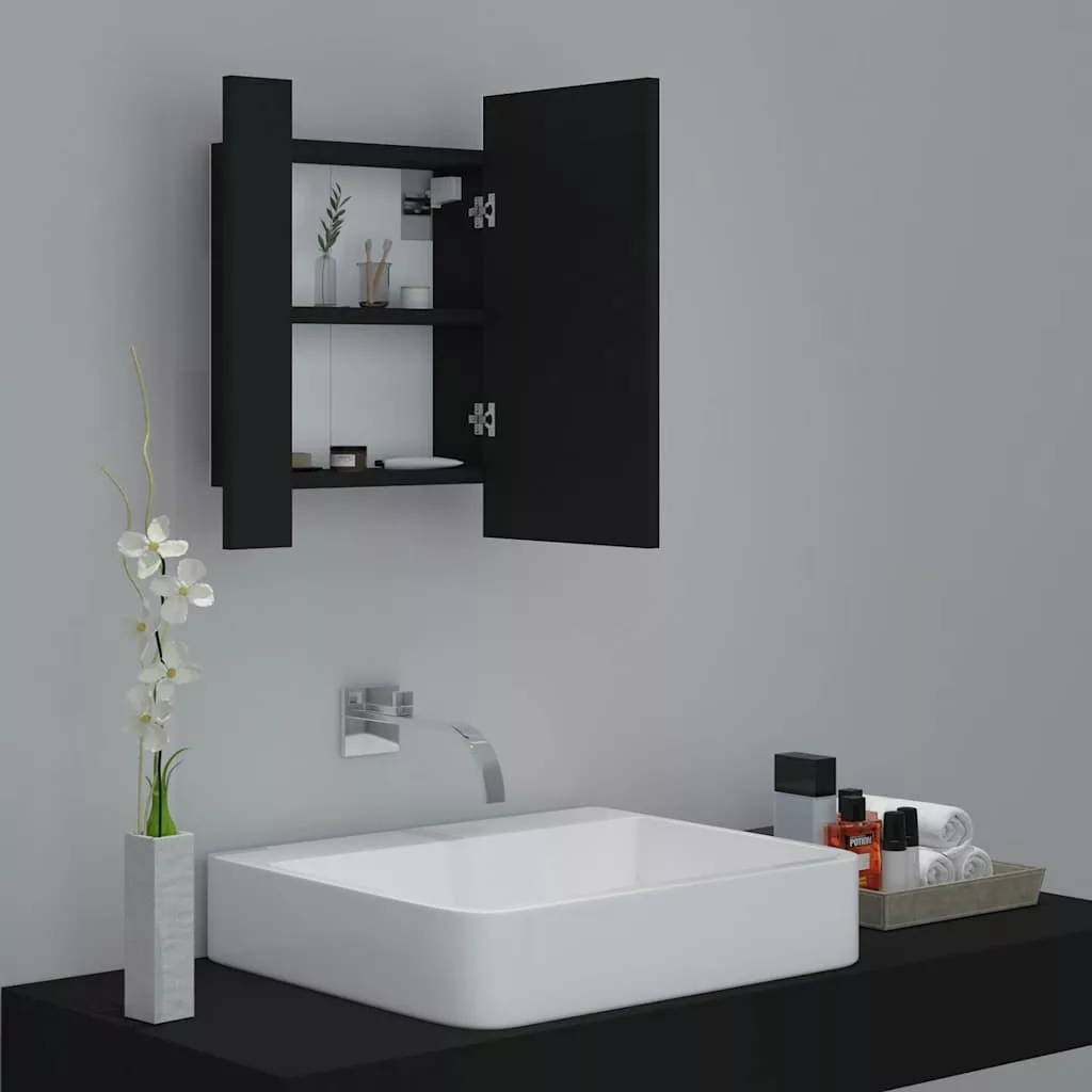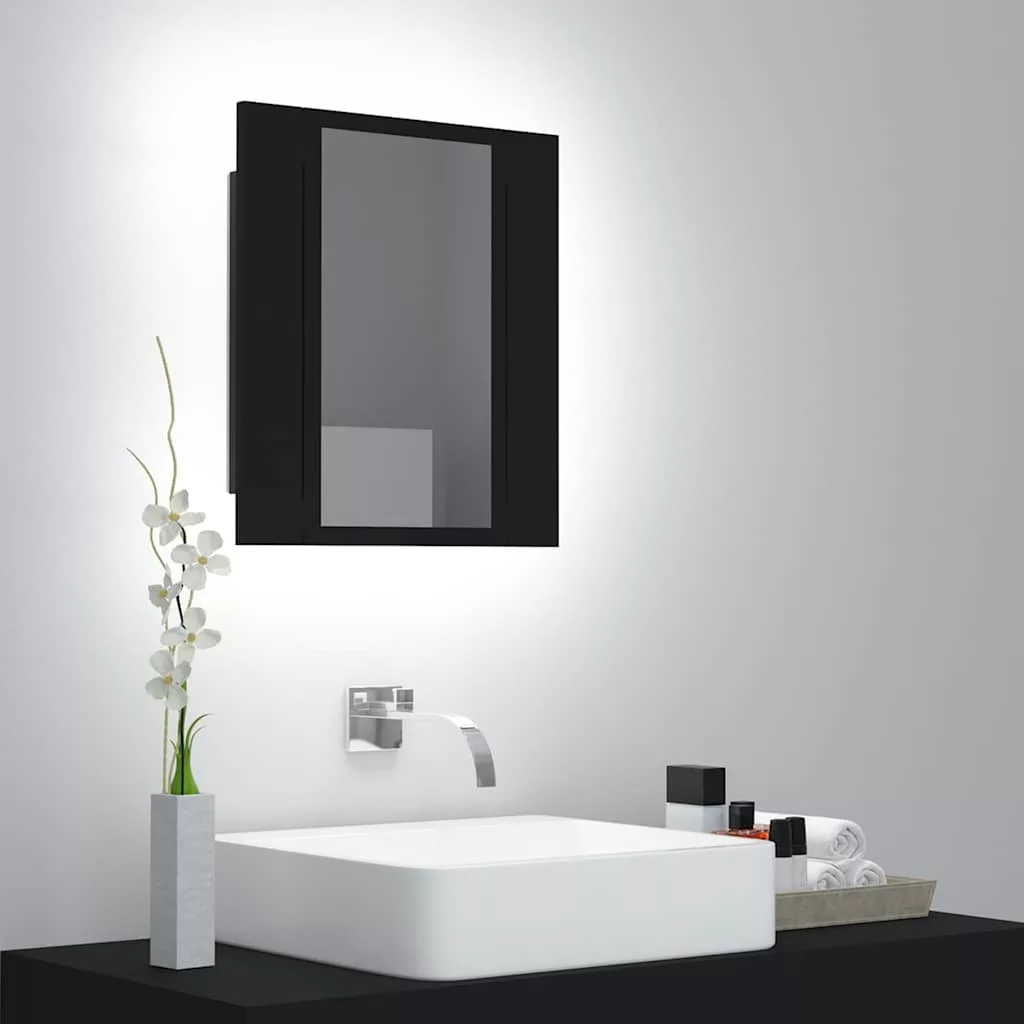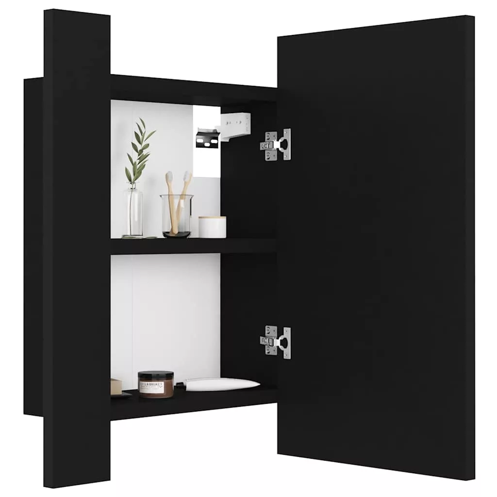 fekete akril LED-es fürdőszobaszekrény tükörrel 40x12x45 cm