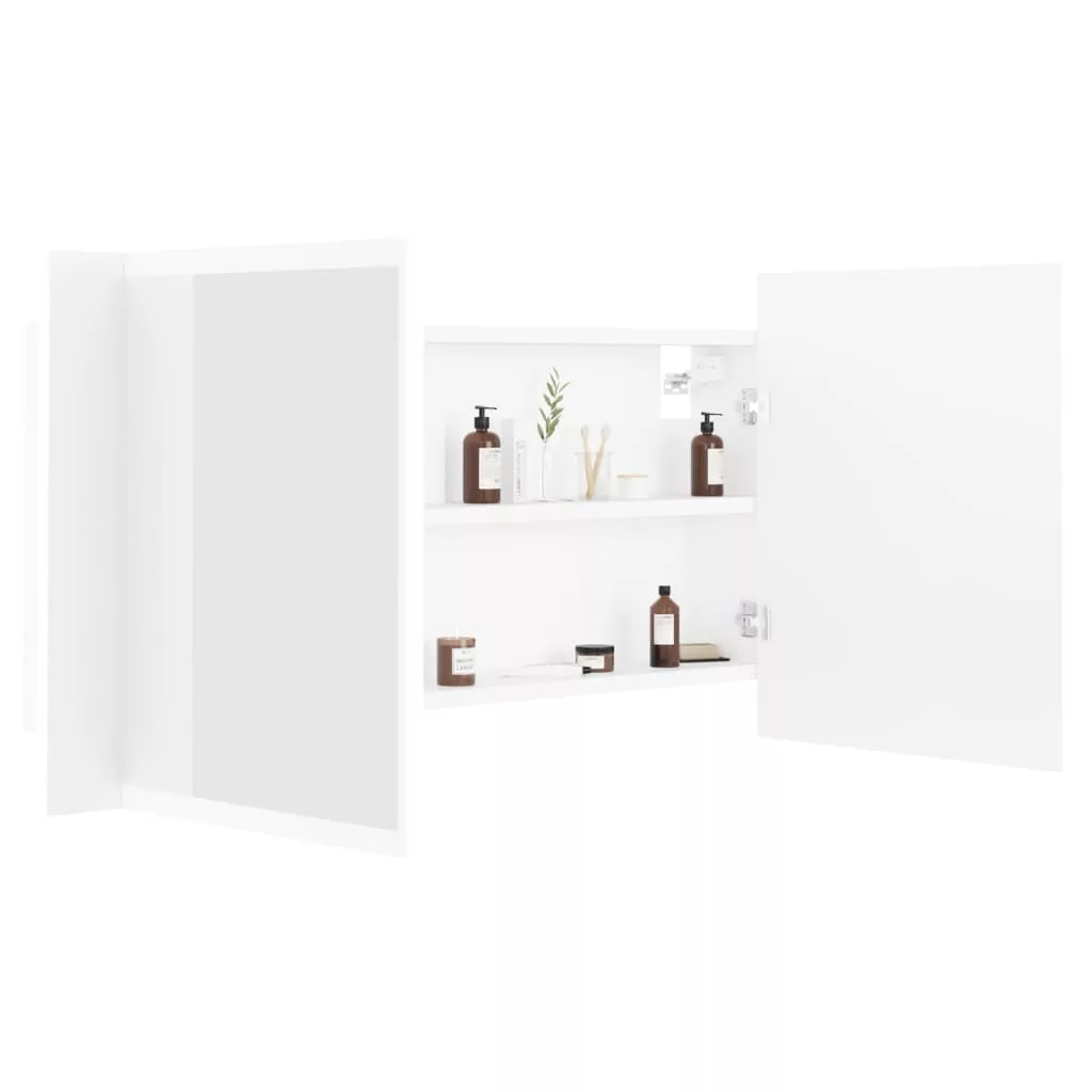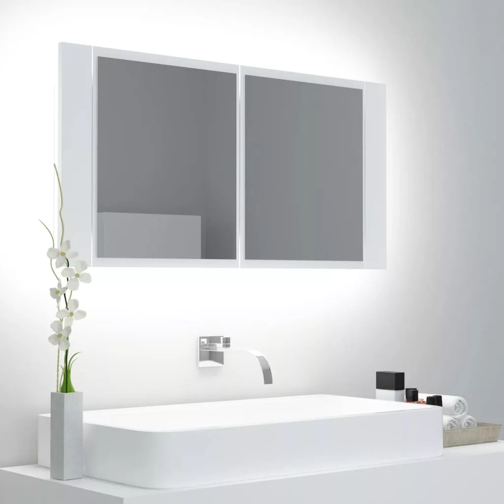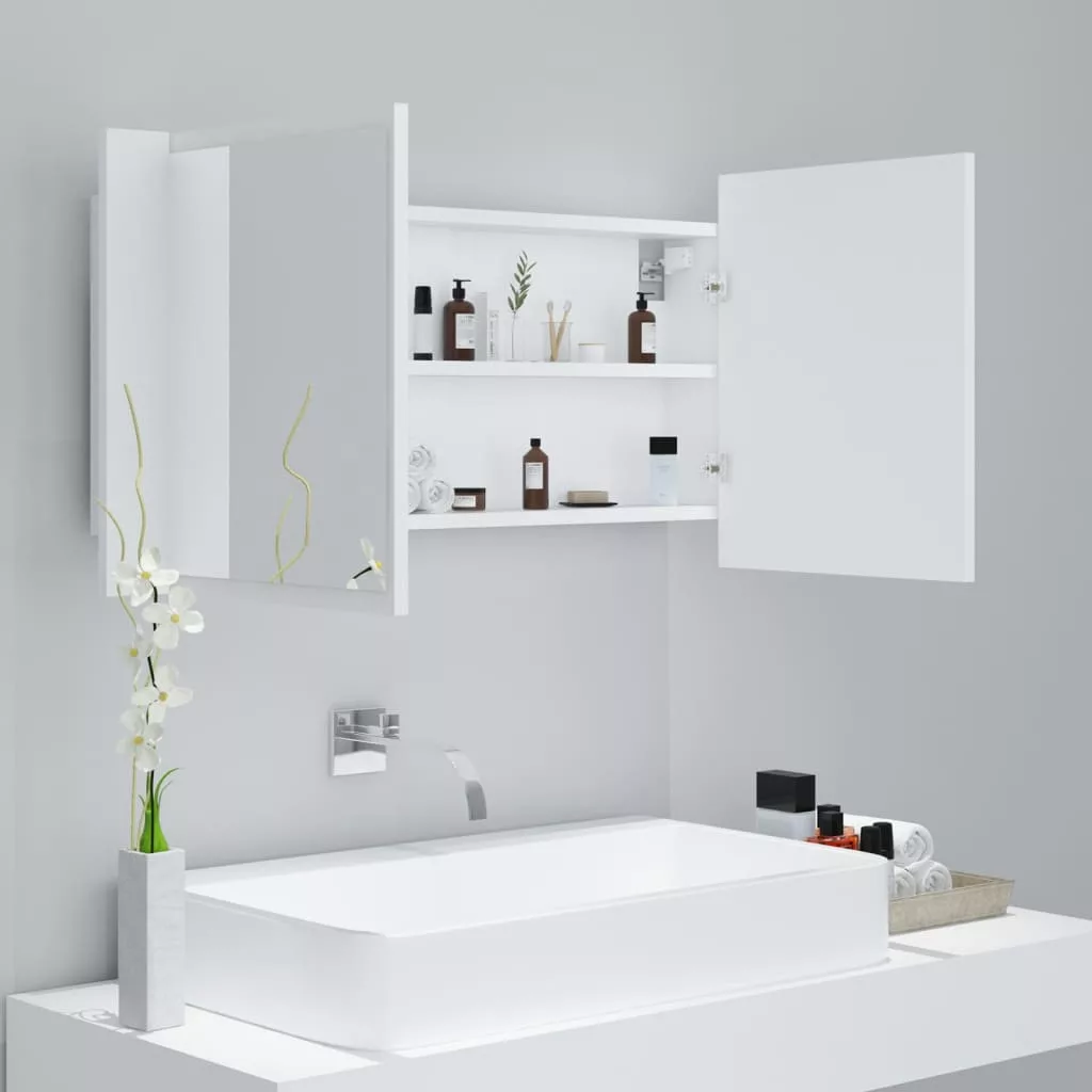 fehér akril LED-es fürdőszobaszekrény tükörrel 90x12x45 cm