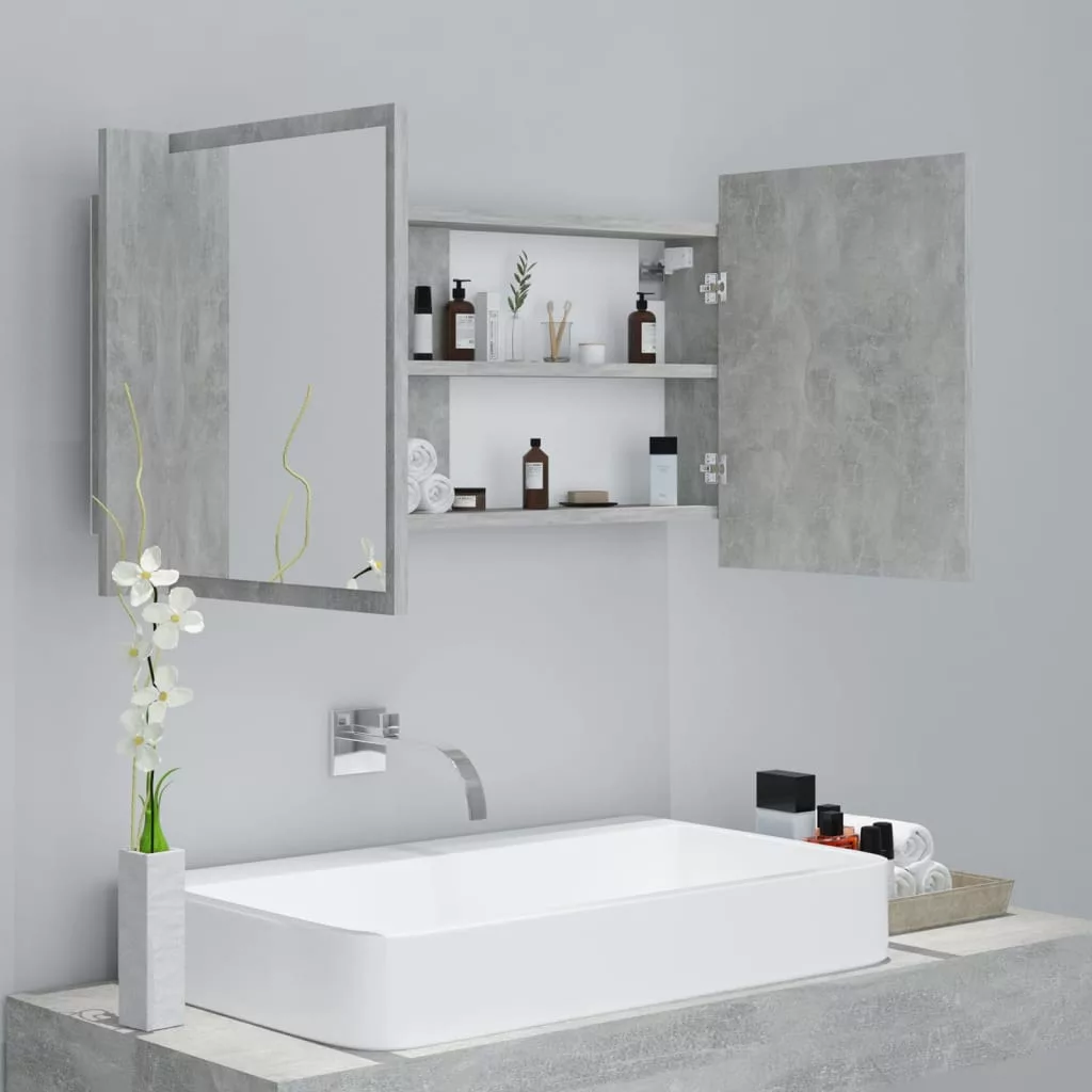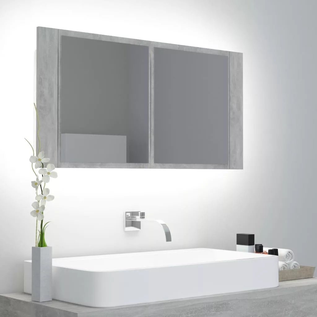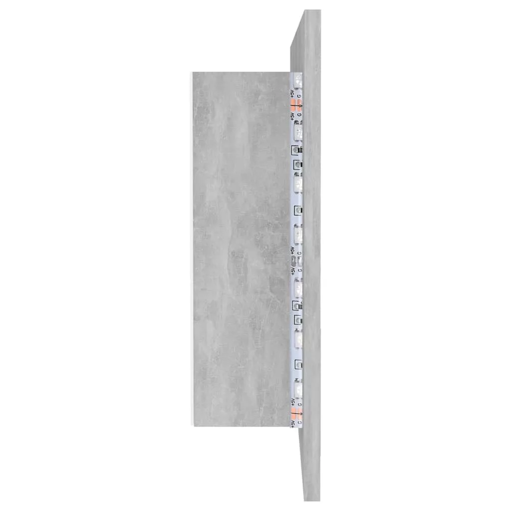 betonszürke akril LED-es tükrös fürdőszobaszekrény 90x12x45 cm