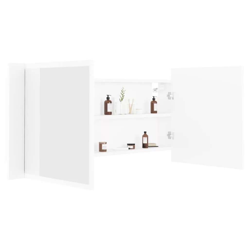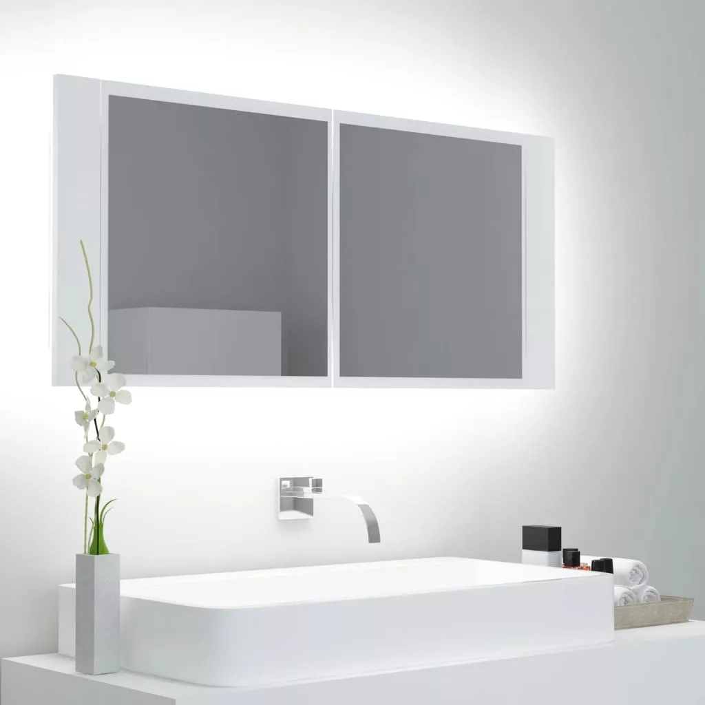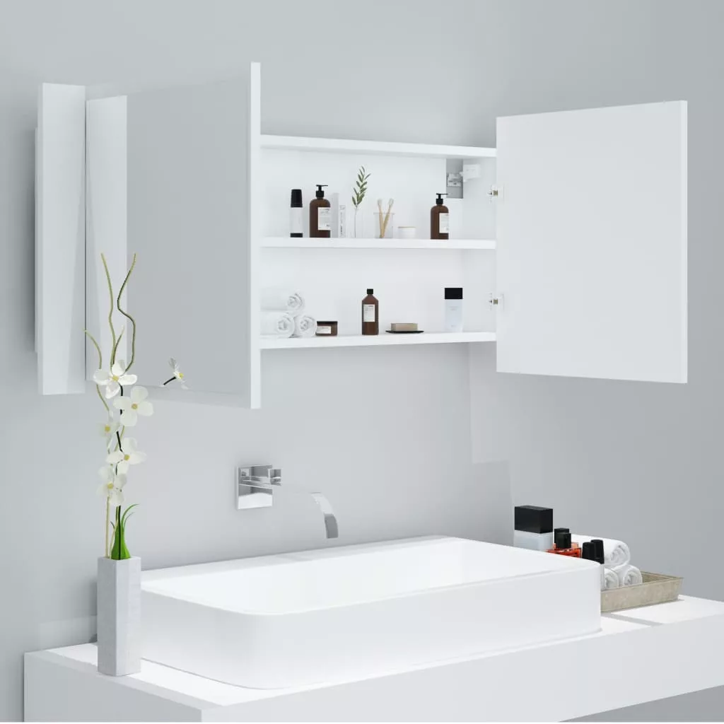 fehér akril LED-es fürdőszobaszekrény tükörrel 100 x 12 x 45 cm