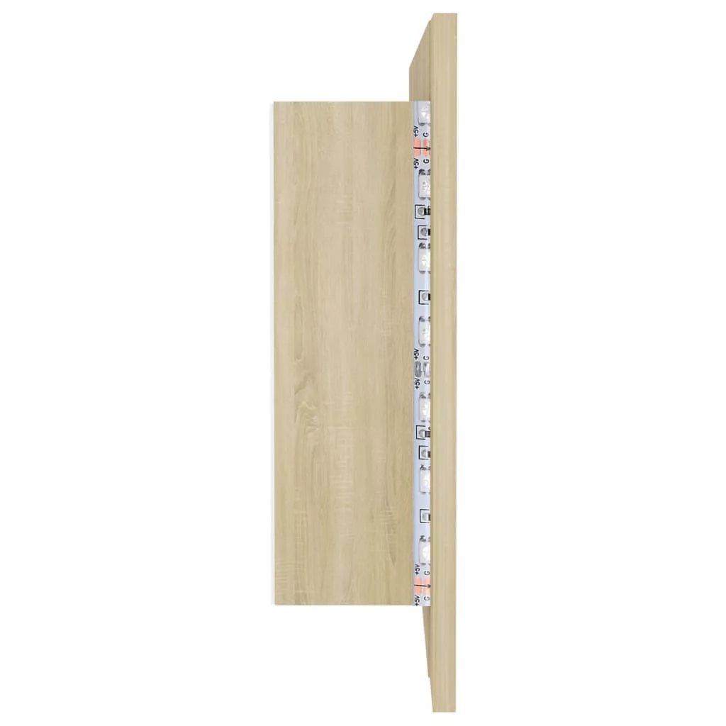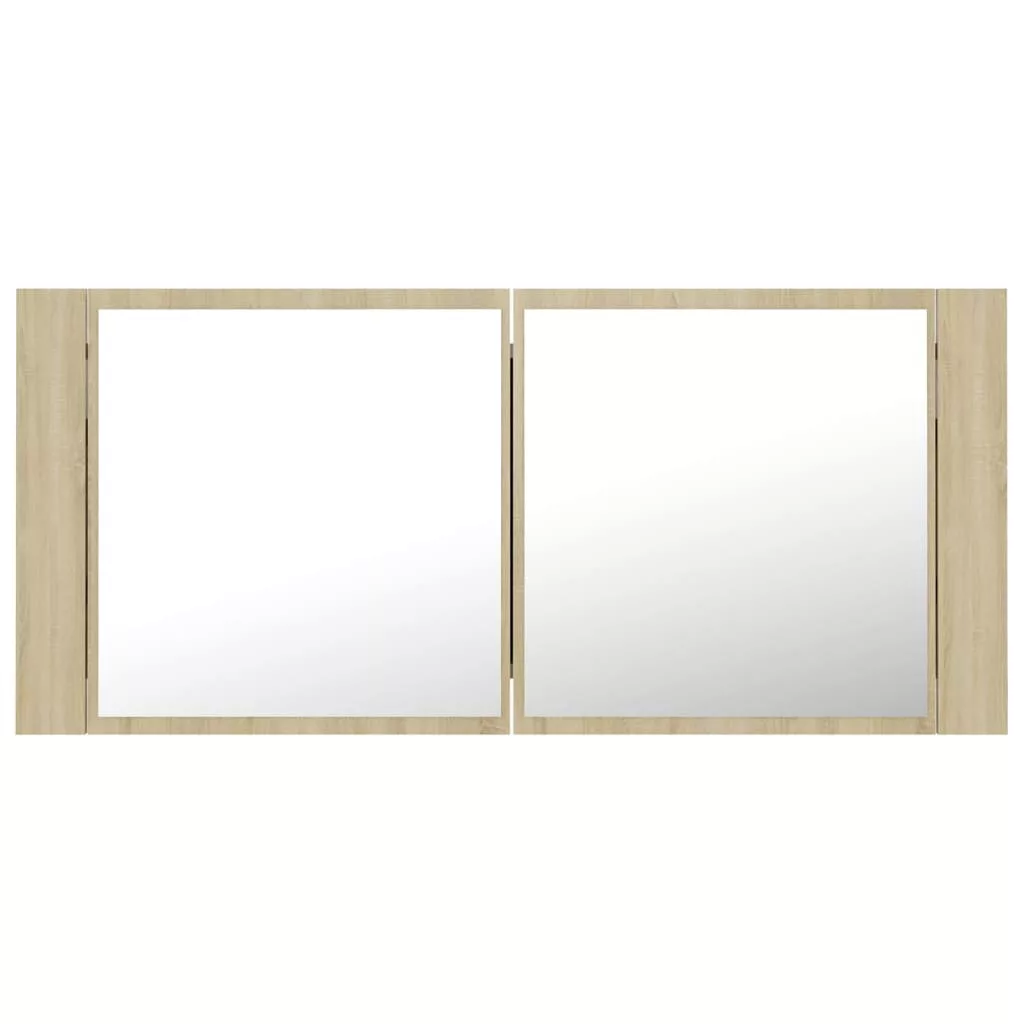 tölgyszínű akril LED-es tükrös fürdőszobaszekrény 100x12x45 cm
