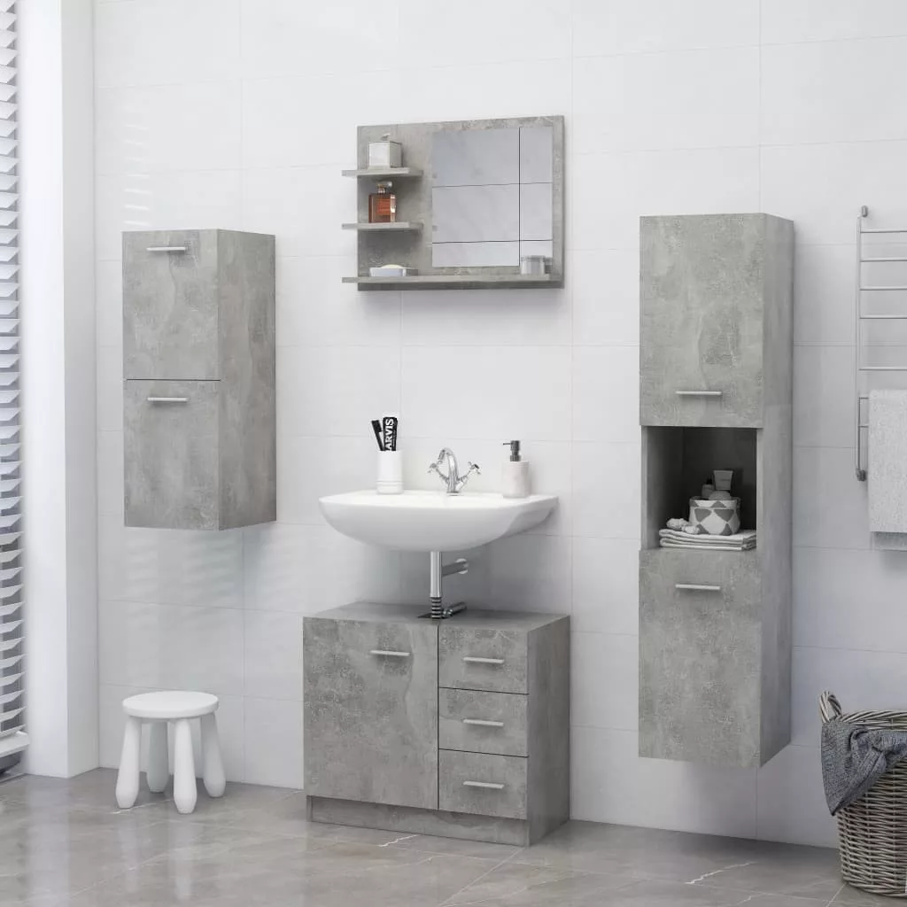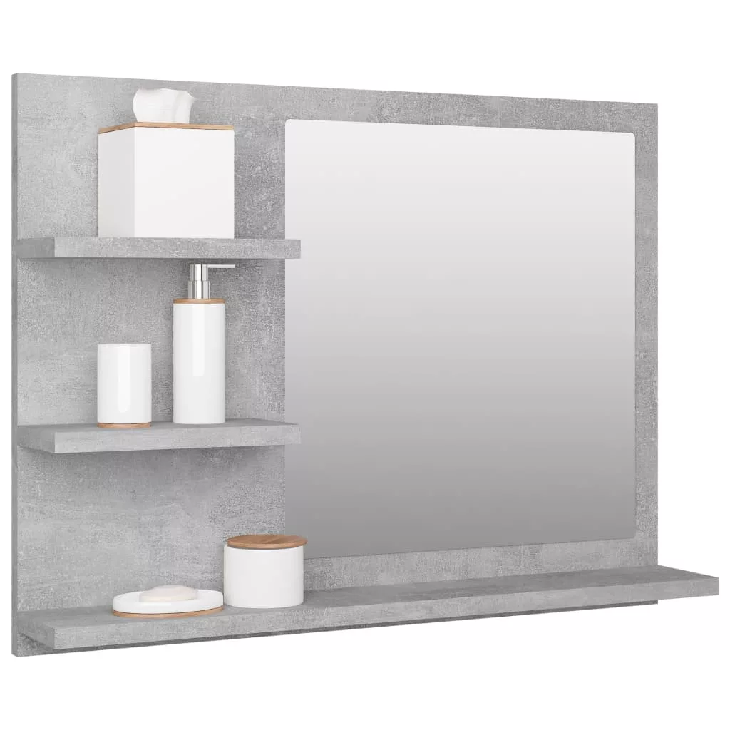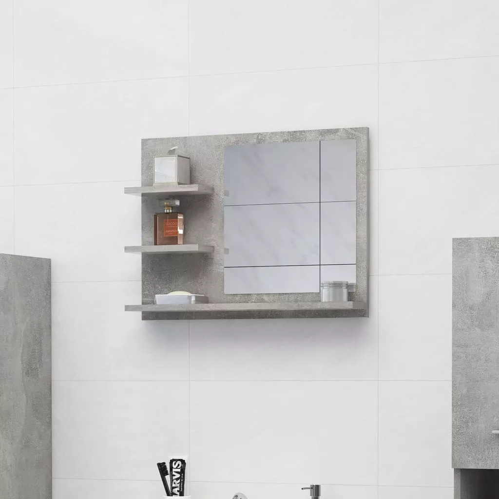 betonszürke szerelt fa fürdőszobai tükör 60 x 10,5 x 45 cm