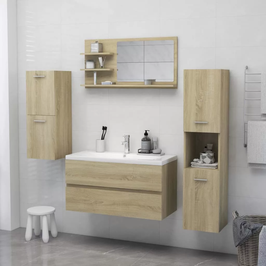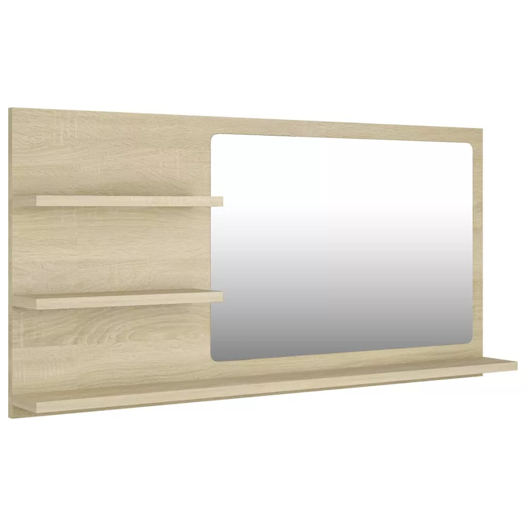 sonoma tölgy színű szerelt fa fürdőszobai tükör 90x10,5x45 cm