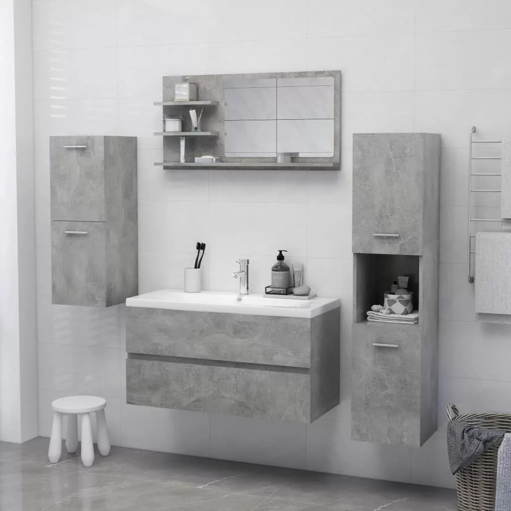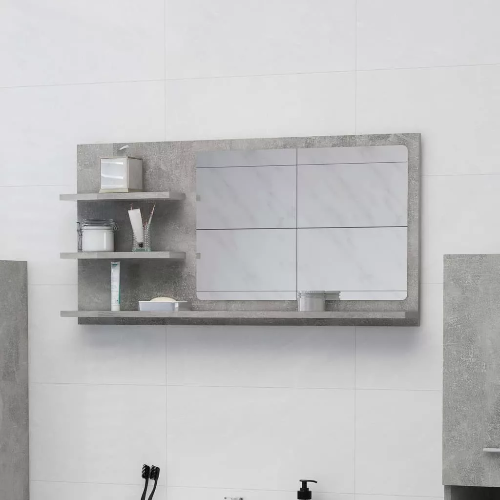 betonszürke szerelt fa fürdőszobai tükör 90 x 10,5 x 45 cm