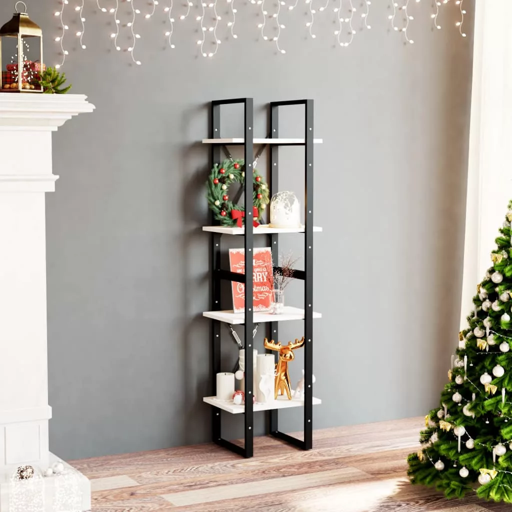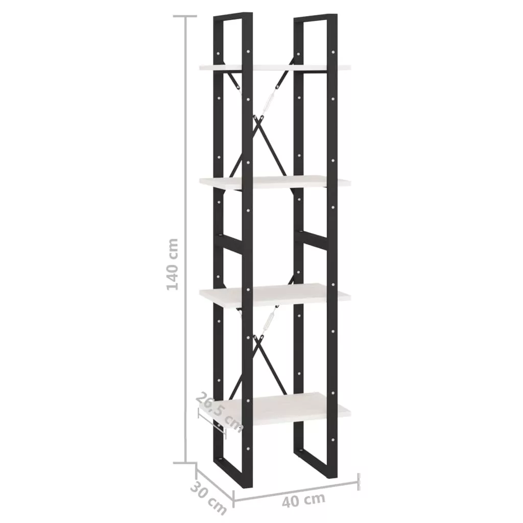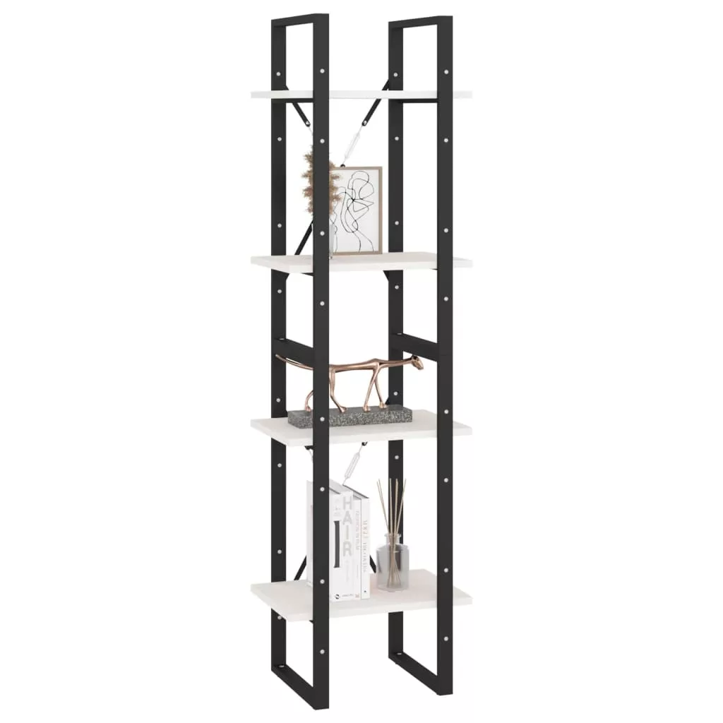 négyszintes fehér tömör fenyőfa könyvszekrény 40 x 30 x 140 cm
