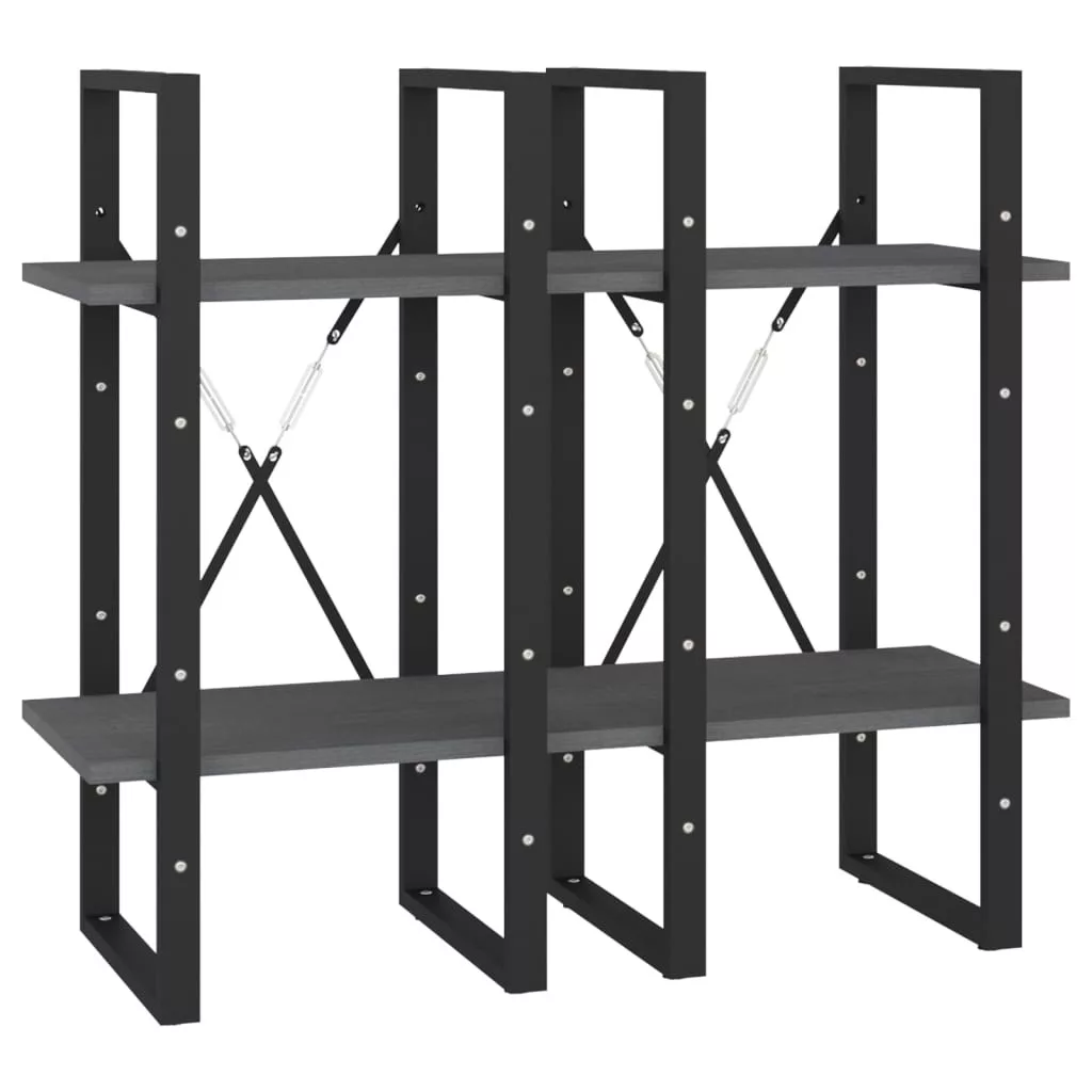 négyszintes szürke tömör fenyőfa könyvszekrény 40 x 30 x 140 cm