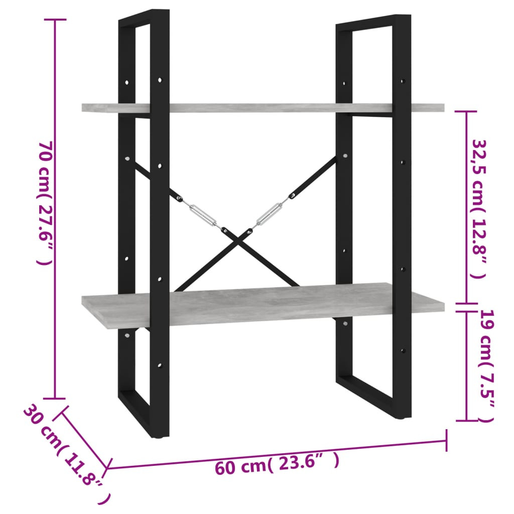 kétszintes betonszürke szerelt fa könyvszekrény 60 x 30 x 70 cm