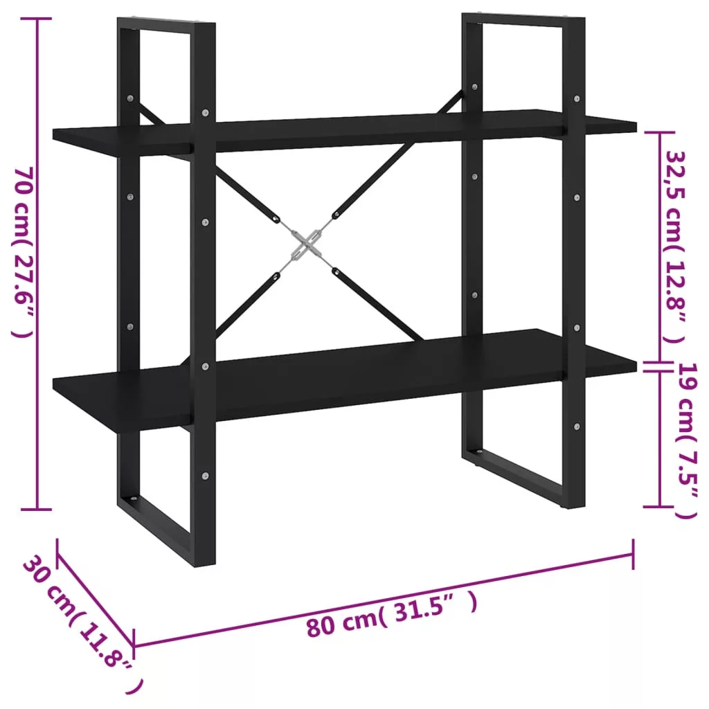 2-szintes fekete szerelt fa könyvszekrény 80 x 30 x 70 cm