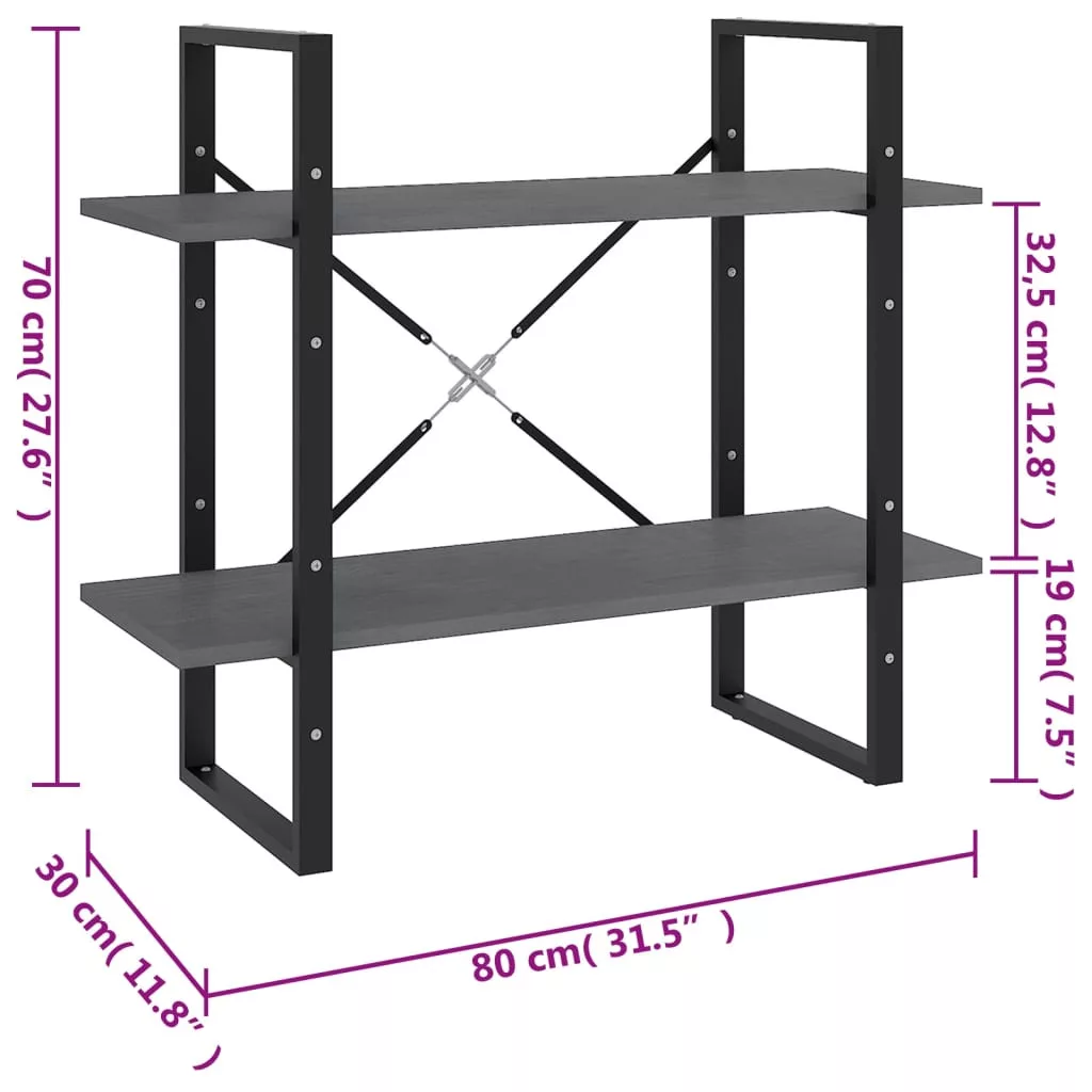 kétszintes szürke tömör fenyőfa könyvszekrény 80 x 30 x 70 cm