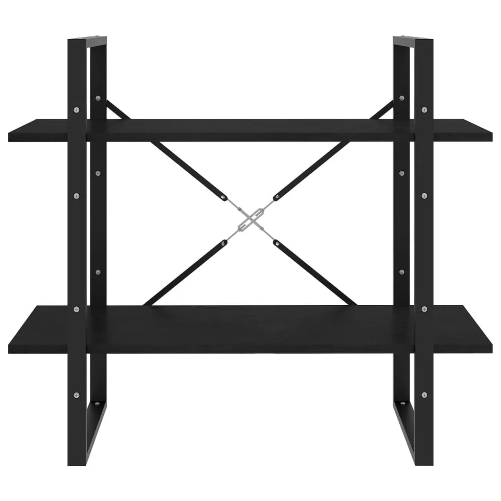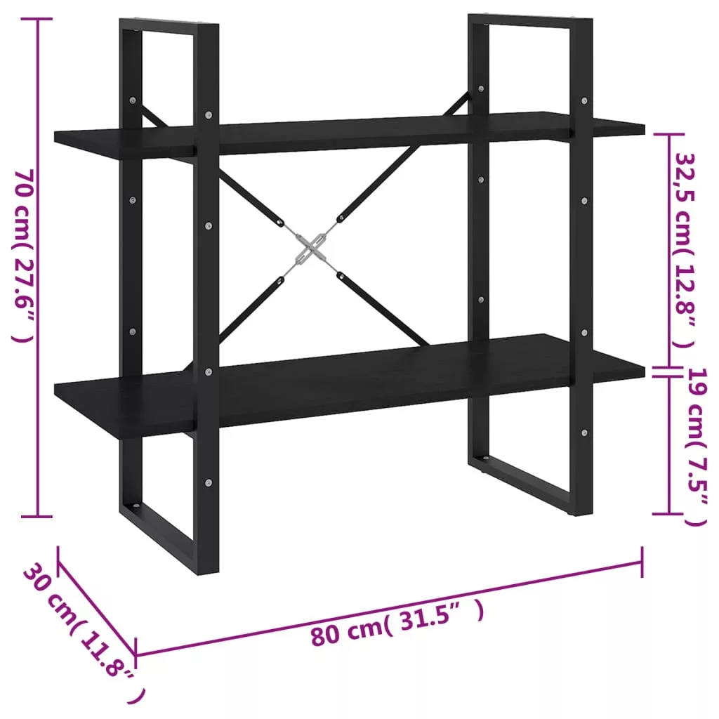kétszintes fekete tömör fenyőfa könyvszekrény 80 x 30 x 70 cm